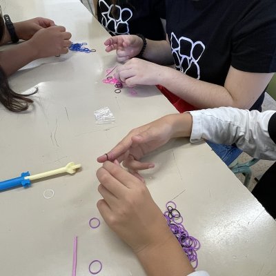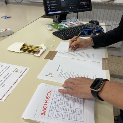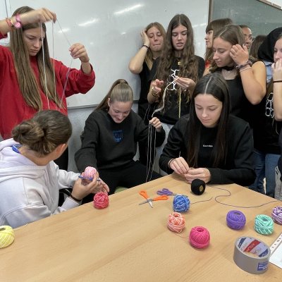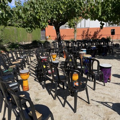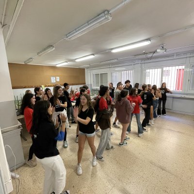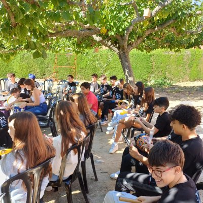 Després d'esmorzar, els alumnes es van repartir en diversos tallers i activitats: des d’un bingo musical fins al futbol bombolla, passant per karaoke, “just dance”, taller de polseres, competició FIFA, danses tradicionals, etc. Un taller destacat va ser el de percussió que va preparar el Gerard Mallorquí al pati de les moreres: una rotllana amb 100 instruments diferents va fer que 100 alumnes toquessin conjuntament al ritme marcat pel monitor. (vídeos)