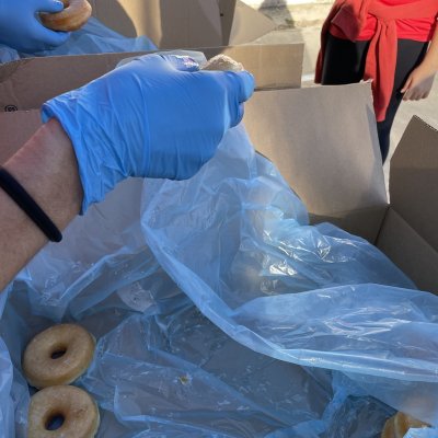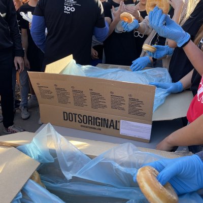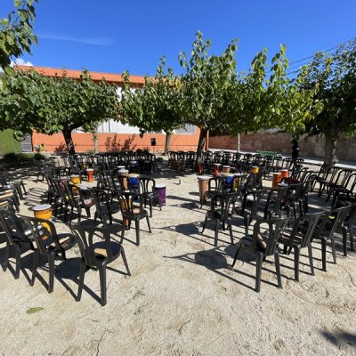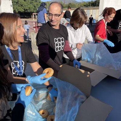 El dron del Roger Recasens ens va fet una foto aèria i després, el discurs del director va celebrar aquests 100 anys d’història recordant-nos que #TotsSomJaumeHuguet i, per tant, tots ens hem de sentir partícips d’aquesta celebració. Tot seguit, es va repartir l’esmorzar gentilesa de l’empresa Europastry de Vallmoll-Sarral.