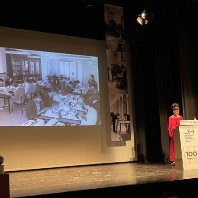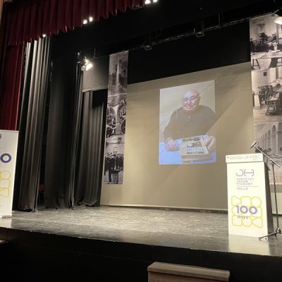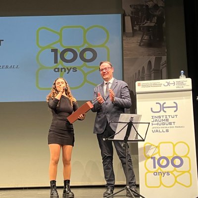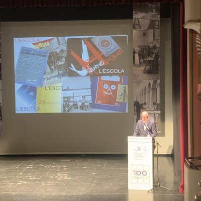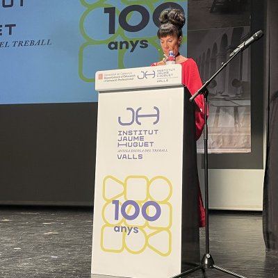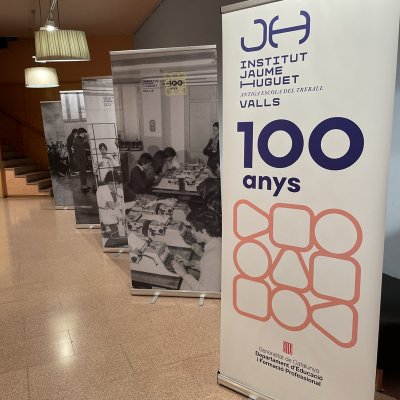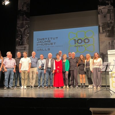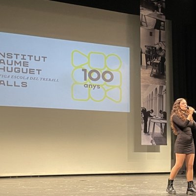 Després es va fer un recorregut pel passat del nostre centre a través de les vivències d’uns quants exalumnes en representació de tots aquests cent anys d’història; va ser una bona mostra de tots els ensenyaments impartits al centre, des de les diverses branques de l’antiga FP, passant per l’ESO, el BAT i cicles formatius de GM i de GS. Tots ells havien enregistrat un vídeo explicant el seu pas pel centre (què hi van estudiar, durant quants anys hi van estudiar, el nom del centre quan hi estudiaven, on era ubicat, si van coincidir amb la celebració del 50è o del 75è aniversari i, finalment, a què s’han dedicat professionalment).