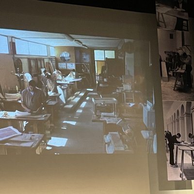 Durant tot l’acte, a la pantalla es van anar projectant imatges antigues dels tallers i espais històrics de les diverses seus de l’Institut Jaume Huguet·Antiga Escola del Treball; de les celebracions del 25è aniversari, del 50è aniversari i del 75è aniversari; portades de les publicacions que s’han fet amb motiu d’aquests aniversaris, etc.