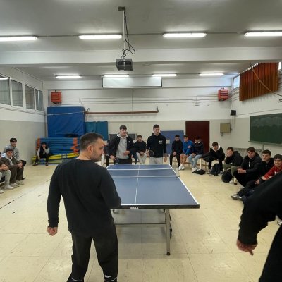 En acabar la xerrada, al gimnàs, alguns dels nostres alumnes d’EAS van jugar unes partides d’exhibició amb Morales.