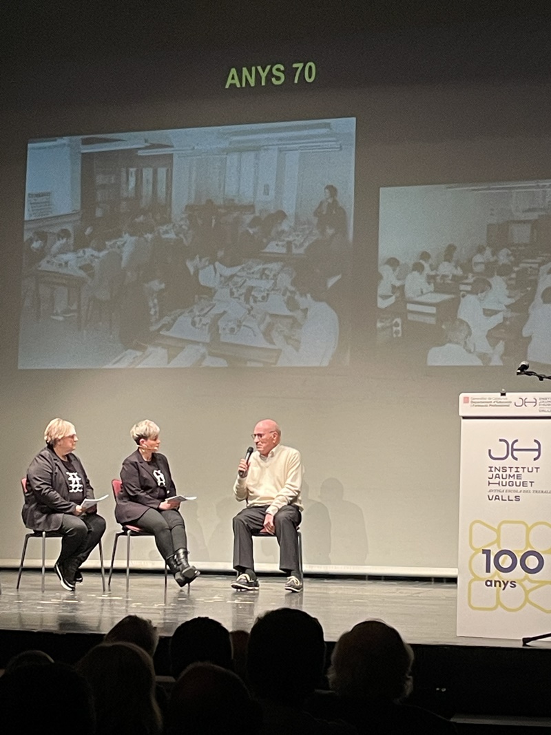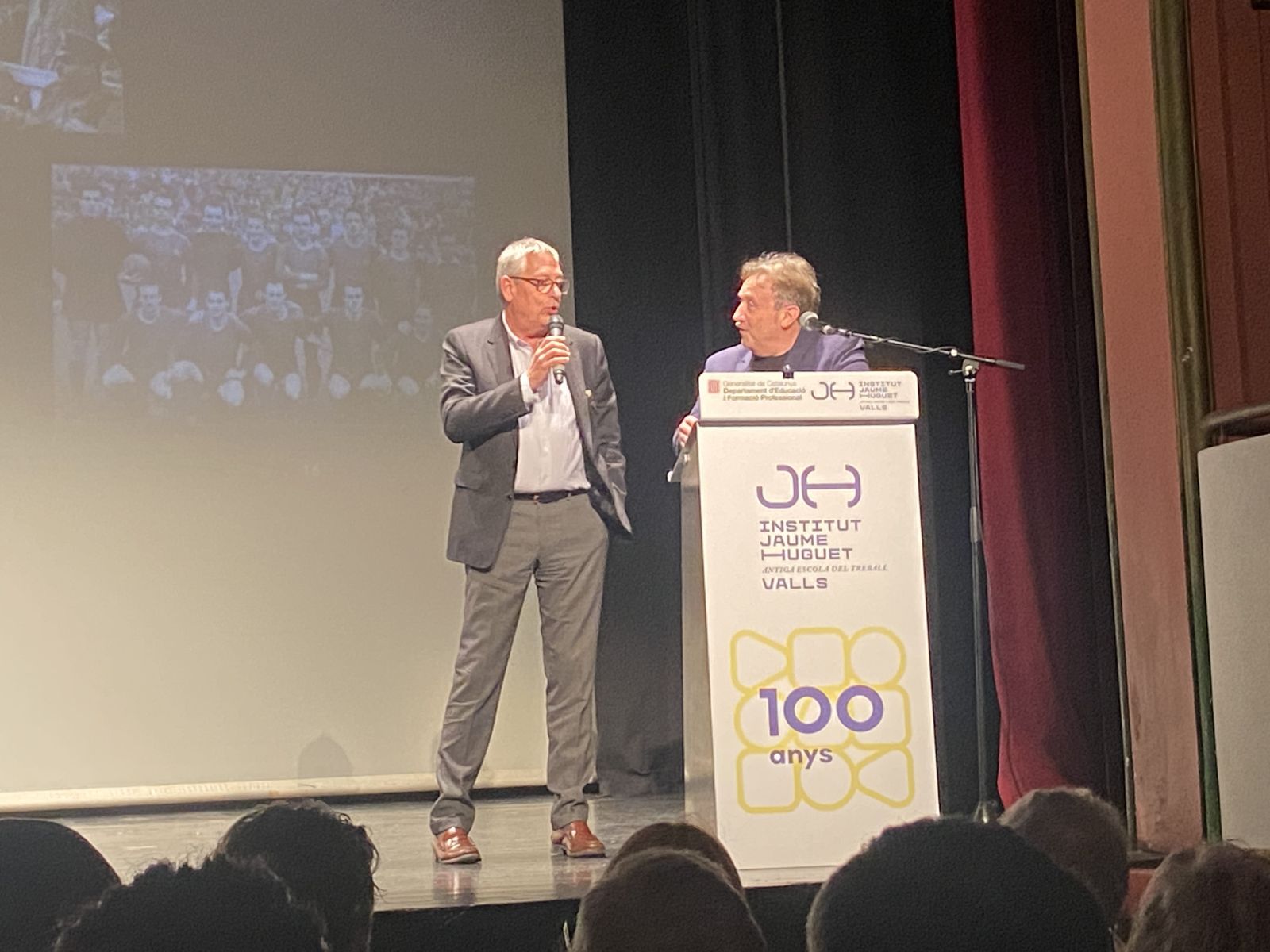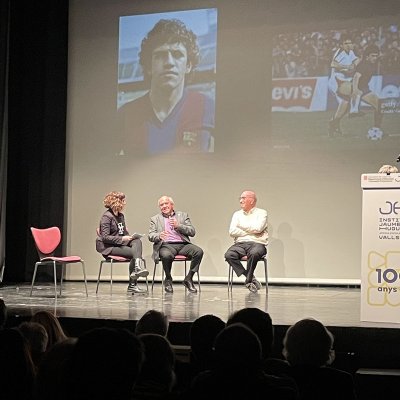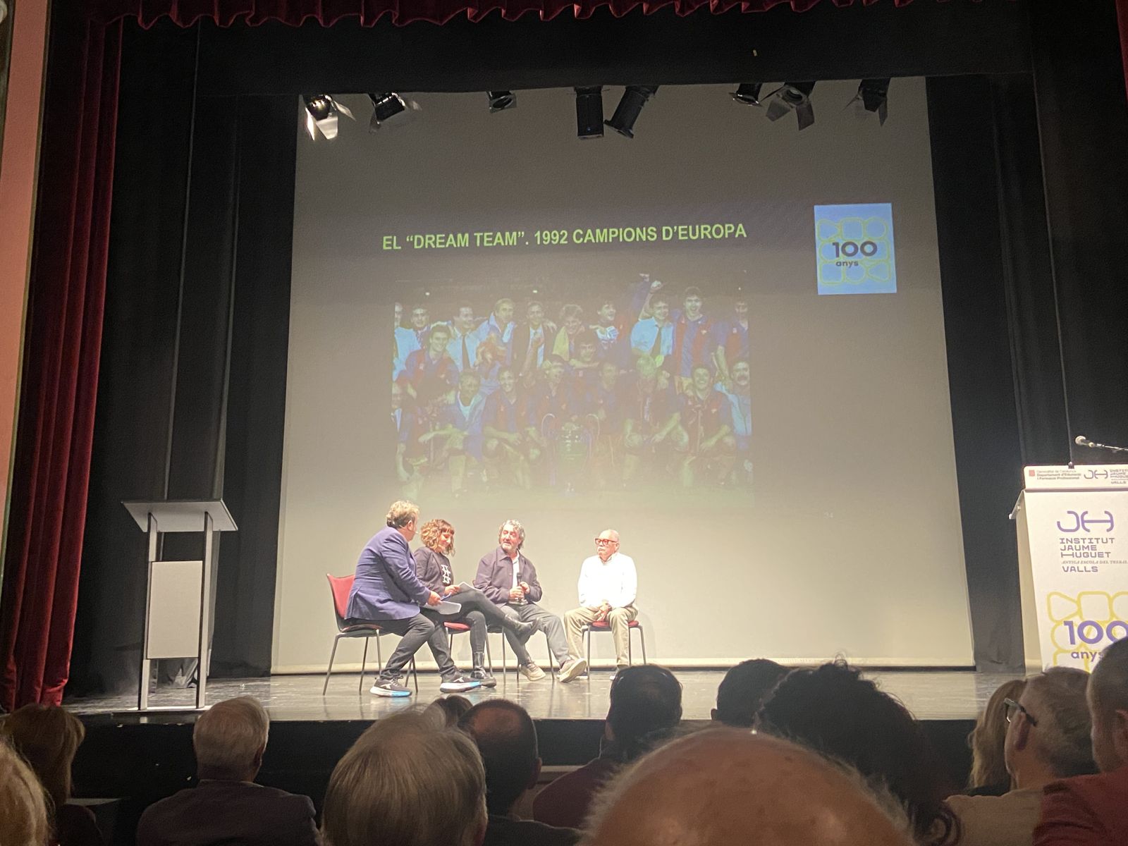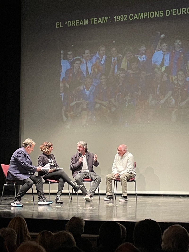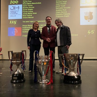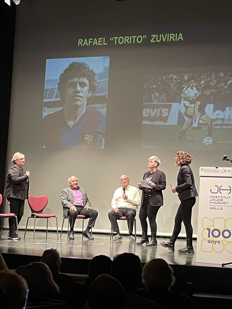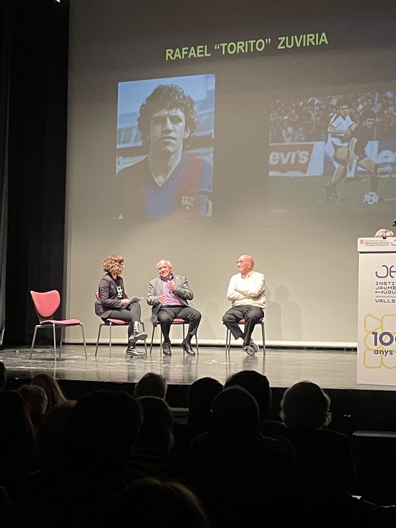 Entremig d’aquest repàs de les diverses etapes de les dues institucions es van anar intercalant les intervencions del jugador aleví del FC Barcelona, el vallenc Roger Moreno; Andreu Ruiz, exprofessor del nostre centre i autor de l’escut de la Penya Barça de Valls; l'expolític Josep Maldonado, que va estar present, amb el president Pujol, en la inauguració del nou edifici de l’Institut i, finalment, el periodista Frederic Porta, que és autor, juntament amb Salva Torres, de diversos llibres d’història del Barça.