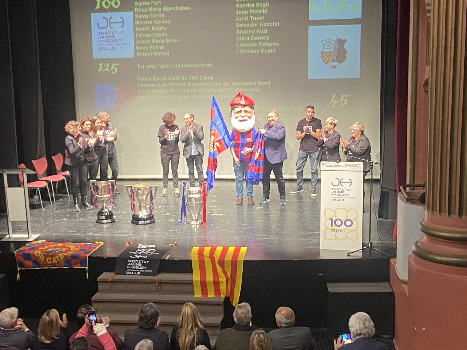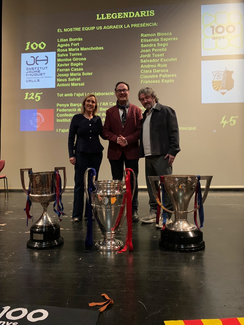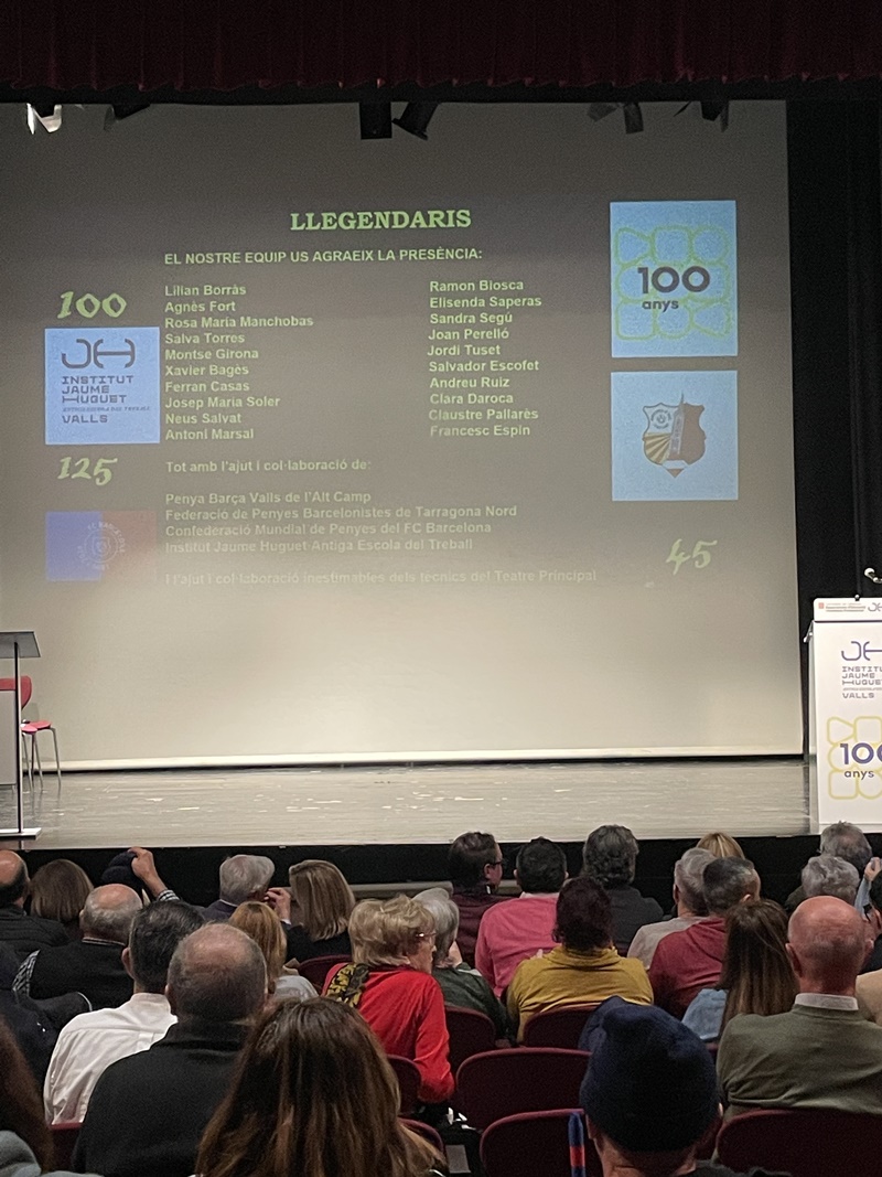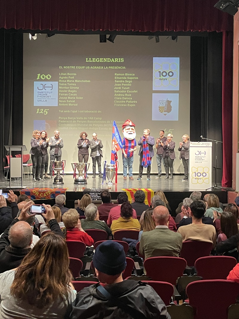 “Llegendaris”: així és com vam titular la gran gala que vam viure el 13 de desembre a la nit al Teatre Principal de Valls. Va ser una nit per recordar els 125 anys del FC Barcelona, els 100 de l’Institut Jaume Huguet•Antiga Escola del Treball i els 45 de la Penya Barça de Valls i l’Alt Camp. En un Teatre Principal ple de gom a gom, hi va estar present l’alcaldessa Dolors Farré, diversos regidors de l’Ajuntament de Valls i membres de diverses penyes barcelonistes de les nostres comarques.