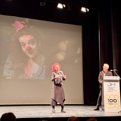 La seva xerrada va donar pas a la pallassa vallenca Pepa Plana, exalumna de l’Institut, que va desgranar alguns dels records de joventut que la van portar des d’estudiar administratiu al nostre centre fins a ser la pallassa reconeguda internacionalment que és ara.