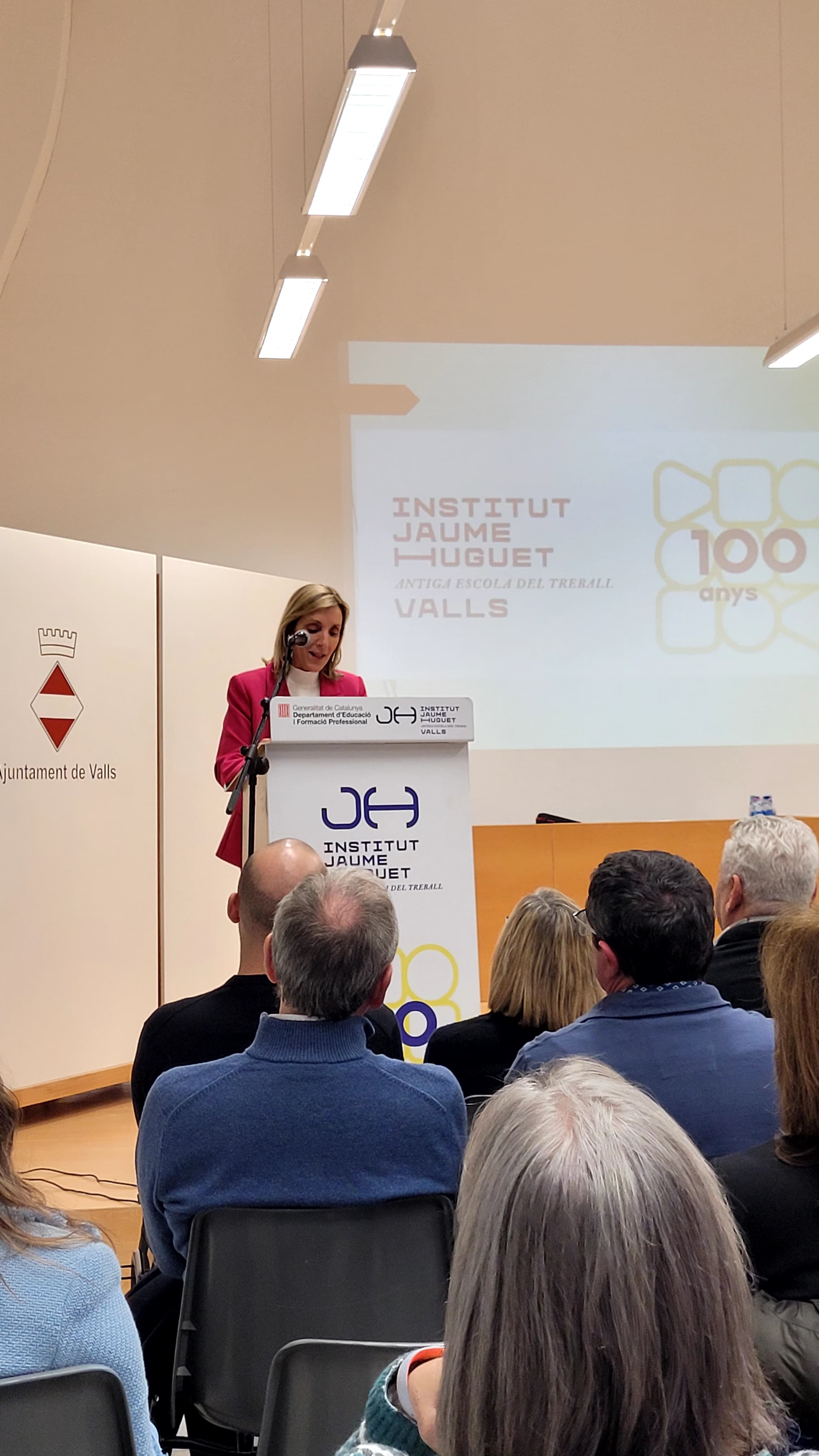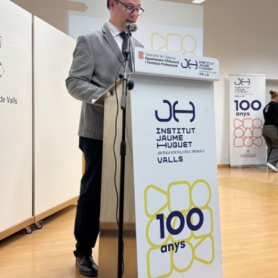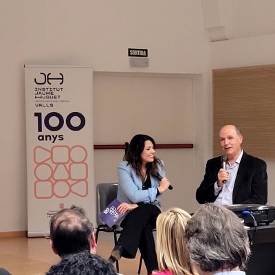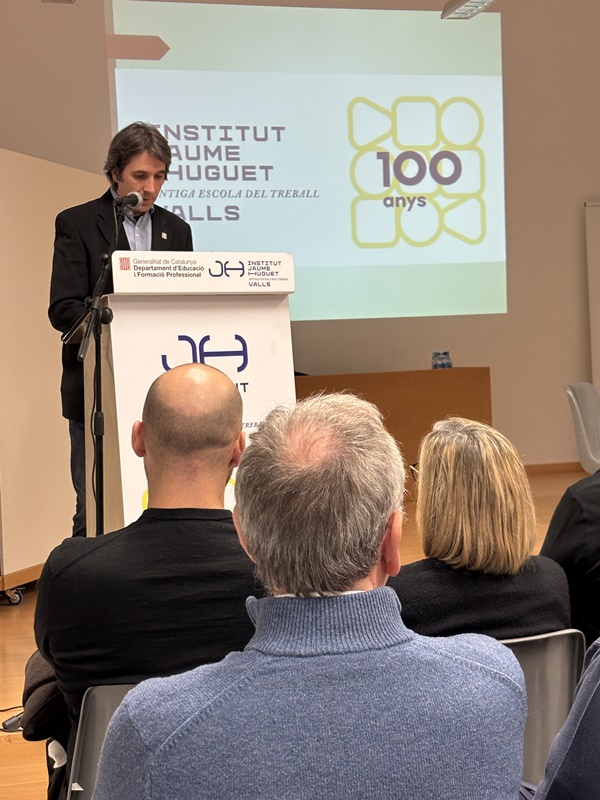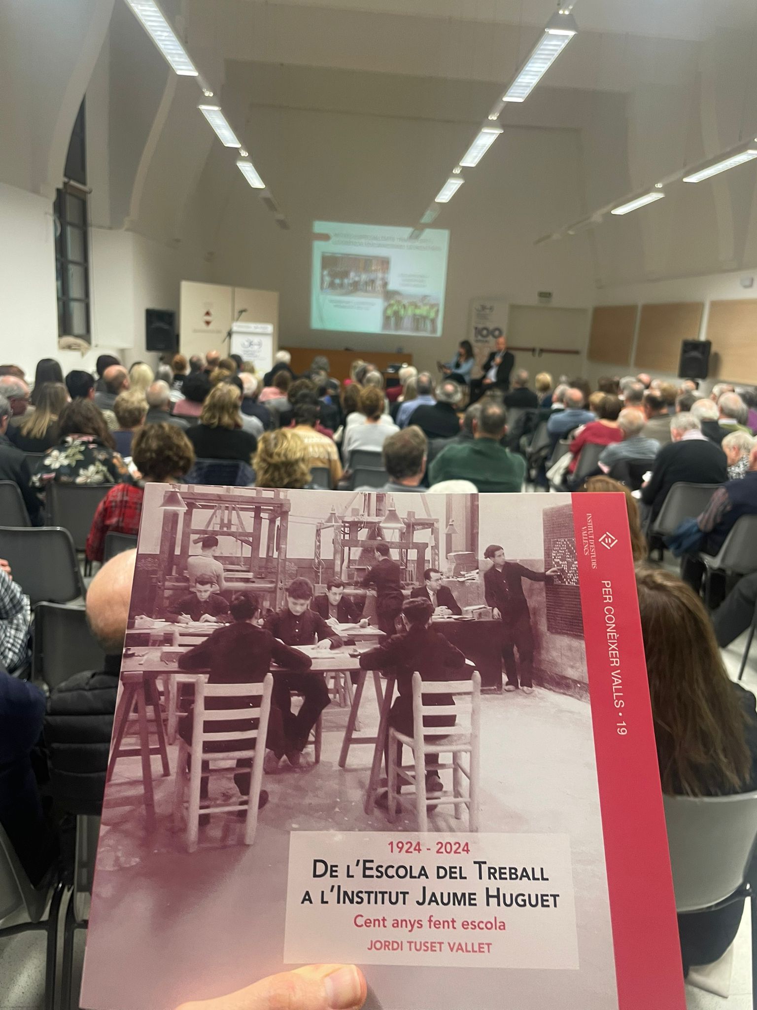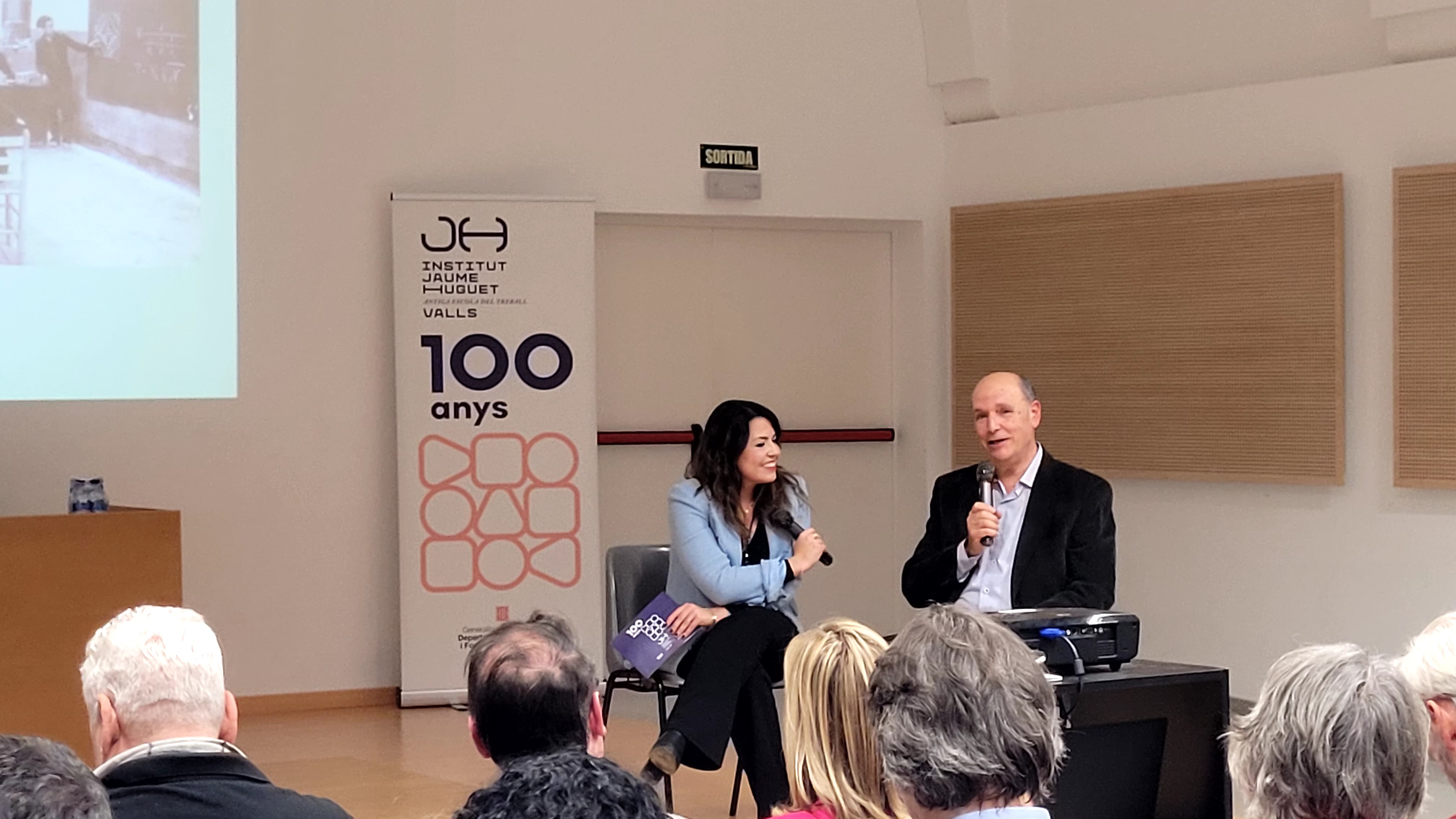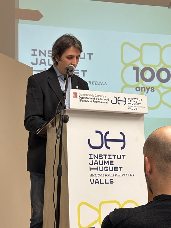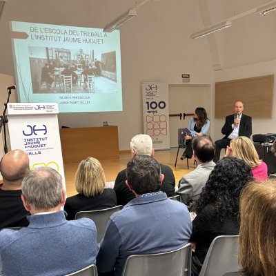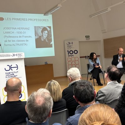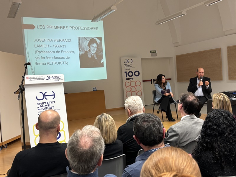Tot seguit, en forma d’entrevista i d’una manera molt distesa, Marta Ferré i Jordi Tuset van fer la presentació del llibre, el qual, en paraules de l'autor, “vol ser un testimoni de cent anys de trajectòria d’una de les institucions educatives més importants de Valls, de la nostra comarca i de les comarques veïnes. Des d’aquella Escola Professional de l’any 1924, fins a l’actual Institut Jaume Huguet sempre trobem aquell batec de vida educativa, social i cultural que emana gràcies al seu esforç, a la seva iniciativa i a la seva capacitat d’innovació.”