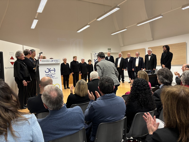 Després va actuar la Societat Coral Aroma Vallenca, en record de l’entitat que va acollir els moments inicials de creació de l’Escola del Treball, i el seu president, Joan Torné, també va rebre un obsequi com a reconeixement d’aquest fet.