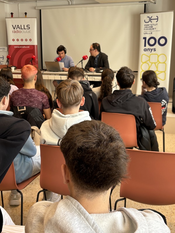 El 13 de febrer és el Dia Mundial de la Ràdio. Per aquest motiu, i com un altre dels actes del Centenari, Ràdio Ciutat de Valls va fer un programa en directe de dos quarts d’11 a les 12 del matí a l’auditori del nostre centre.
