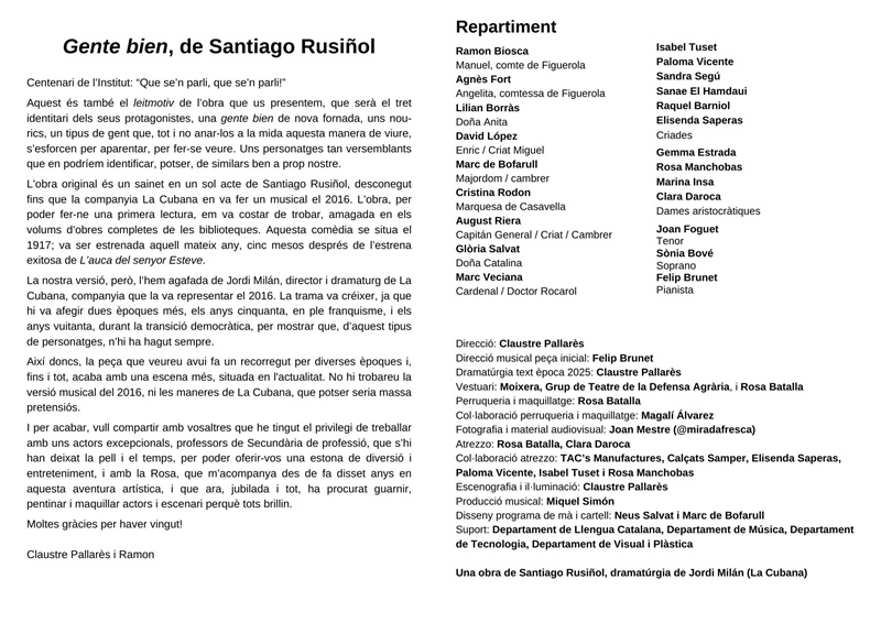 El 21 i 22 de febrer, el Teatre Principal es va omplir per veure aquesta versió particular de la comèdia de Santiago Rusiñol, amb aportacions especials i actualitzacions escrites per la directora, la professora Claustre Pallarès i Ramon.