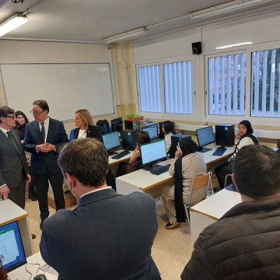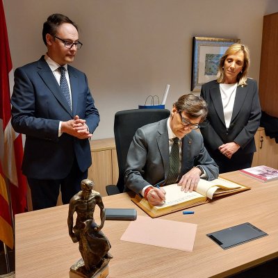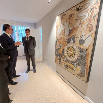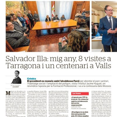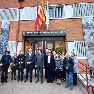 A més de visitar les noves instal·lacions del centre i algunes aules amb alumnes de CFGS, el president va signar en el llibre d’honor. Al despatx del director, a més, se li van lliurar els mateixos obsequis que a les empreses i institucions: l’auca del centenari, l’ampolla de vermut del centenari, material informatiu de tots els ensenyaments del centre, un lanyard, el programa d’actes. Com a avançament editorial també es va lliurar la publicació sobre el Polígon Industrial que parteix de la refosa de tres treballs de recerca del curs passat i de la col·laboració de la Fundació Anespro, editada sota el guiatge del departament d'Humanitats; la presentació oficial d'aquest dossier tindrà lloc el divendres 16 de maig. Finalment, Jordi Tuset, autor del llibre del centenari, lliurà al president un exemplar dedicat de l’obra.