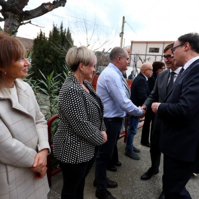 Abans de començar l’acte, el president va voler rebre dos representants dels manifestants que, a les portes del centre, protestaven en contra del tancament de línies a l’ensenyament públic, els quals li van lliurar la carta amb les seves reivindicacions.
