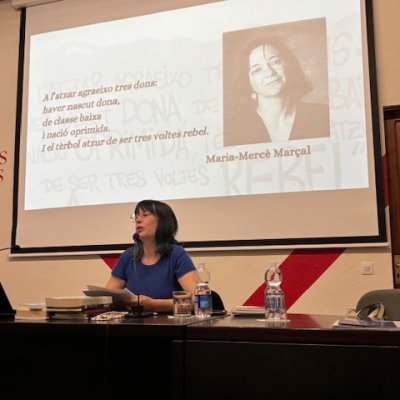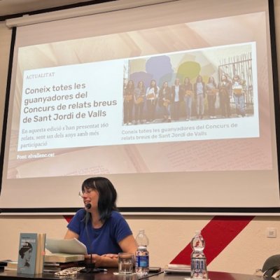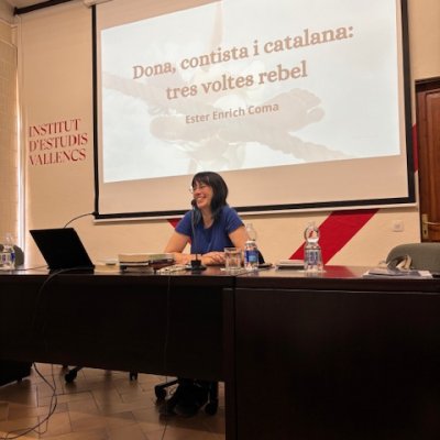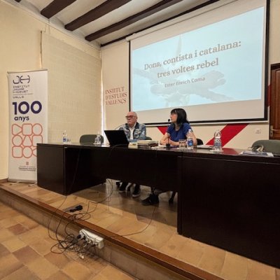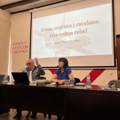 L’exdirector i escriptor Xavier Bagés va presentar l’escriptora i professora d’escriptura Ester Enrich Coma. Amb el títol “Dona, contista i catalana: tres voltes rebel”, l’Ester va animar el públic a entrar en el gènere del conte a través de les reflexions de diverses dones escriptores. Per acabar, la lectura de fragments de contistes catalanes actuals va donar pas a la reflexió final entorn de la tercera paraula del títol: “catalana”, una llengua tan vàlida com qualsevol altra per a la literatura.