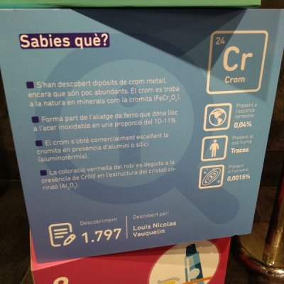 Amb la informació recollida, el passat 13 de setembre, coincidint amb l'acte d’inauguració de la Nit Europea de la Recerca a Tarragona, es va fer l'espectacle "Els secrets de la Taula Periòdica" a la plaça del mercat, i es va inaugurar un espai divulgatiu amb la taula periòdica format per diversos cubs amb informació dels elements, tal com podeu veure a les fotos. Aquesta exposició restarà oberta fins a finals de setmana.