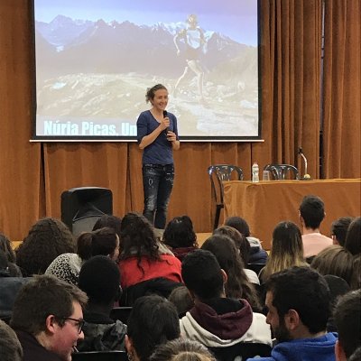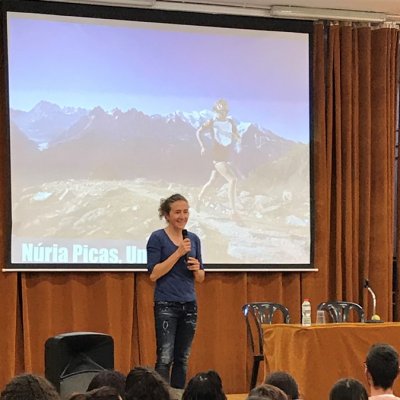 A la tarda va ser quan va tenir lloc la xerrada de Núria Picas, l’esportista especialista en curses ultra-trail de muntanya, Creu de Sant Jordi i diputada al Parlament de Catalunya. A través de la projecció de diversos vídeos, parlà del seu recorregut vital, que la portà fins a guanyar una de les curses més dures del món, la ultratrail del Mont Blanc. Explicà els moments que han marcat la seva vida després del greu accident d’escalada a la muntanya de Montserrat, i tot el que va fer per superar-se fins a aconseguir tots els èxits de la seva carrera esportiva (alimentació, psicologia, entrenaments...).
