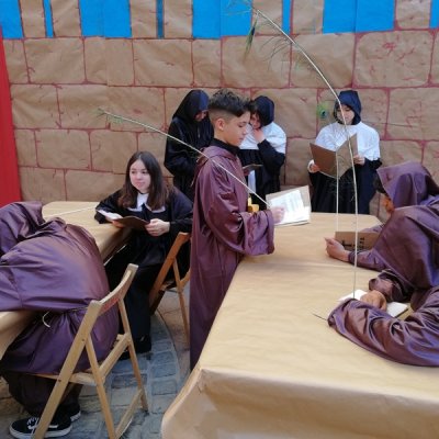 Per segon any consecutiu, la plaça de l'Oli va tornar per un dia a l'Edat Mitjana. El passat 21 de febrer, l’alumnat de 2n d’ESO de l’Institut Jaume Huguet va dur a terme, una recreació històrica medieval a la plaça de l’Oli, com a resultat del seu projecte transversal “Un dia a l’Edat Mitjana”.