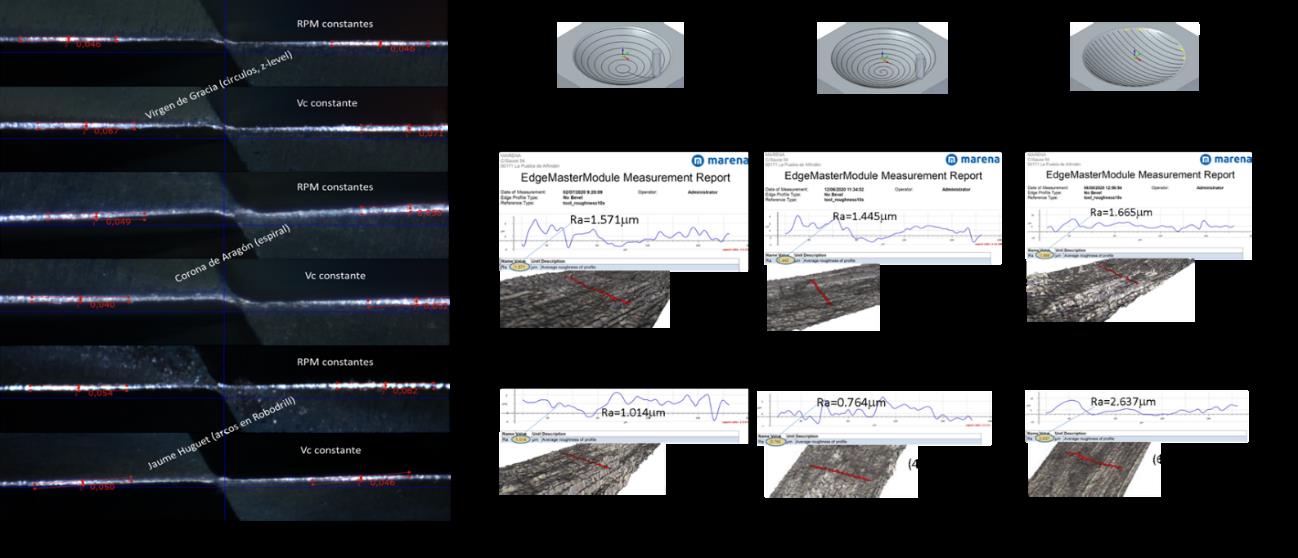 Algunes de les activitats que s’han fet són les següents: un assaig sobre fresat trocoidal (Rauch i Hascoët, 2009) que s’ha realitzat sobre titani en lloc de realitzar trajectòries rectes, que és el més habitual en aquests assajos; per aprofitar més el material es va passar a espiral d'Arquimedes, cosa que, a més va suposar recordar als participants la quantitat de realitzacions tècniques i artístiques que es deuen a aquesta corba, i també repassar les realitzacions (mecànica i hidràulica, especialment per a la família professional de fabricació mecànica) d'aquest científic i la seva implicació en l'educació (Espinosa i Vera, 2014).