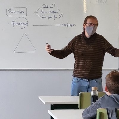 Carles Porrini Cubells va fer-los el taller amb l’objectiu que coneguessin els conceptes claus de l’assetjament escolar i prenguessin consciència dels diferents agents que hi intervenen. També els va donar habilitats personals i socioemocionals perquè aprenguessin a gestionar les emocions i el benestar. Finalment, els donà pautes d’actuació per prevenir, detectar i actuar davant de situacions d’assetjament.