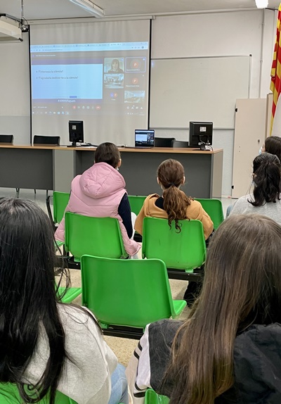 Avui és el Dia Internacional de les Dones i les Nenes en la Ciència. Per tal d’impulsar les vocacions científiques (STEAM: àmbits de ciències, tecnologia, enginyeria, arts i matemàtiques) , especialment entre les noies, hem organitzat una xerrada en línia per a l’alumnat de 1r d'ESO; l’ha impartit Adelaida Morte Pérez, científica que treballa en el desenvolupament de medicaments al laboratori farmacèutic ESTEVE.