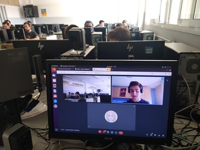 El 25 d'abril, per videoconferència, l'Albert els explicà la seva experiència a la universitat, quines matèries es fan, la dificultat de cadascuna, quins equipaments té la universitat, la importancia de treballar i estudiar en grup, del percentatge de dones i homes en la carrera, del cost de la universitat, etc..