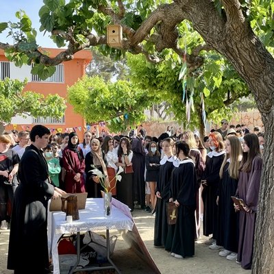 El 20 de maig, l’alumnat de 2n d’ESO de l’Institut va dur a terme una recreació històrica medieval al pati de Batxillerat del centre com a resultat final del projecte “Un dia a l’Edat Mitjana”.