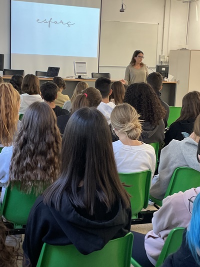 Tots els grups de 1r de Batxillerat vam tenir l’oportunitat de saber com la Marta ha viscut gran part de la seva vida acadèmica, especialment, a partir del Batxillerat i ens va donar molts consells, no només per a aplicar-los en aquesta etapa sinó també per a tota una vida. Paraules que sempre s’haurien de tenir en compte com esforç, errors, decisions, autoconeixement, aprenentatge, canvis, ansietat i vocació van centrar la seva intervenció.