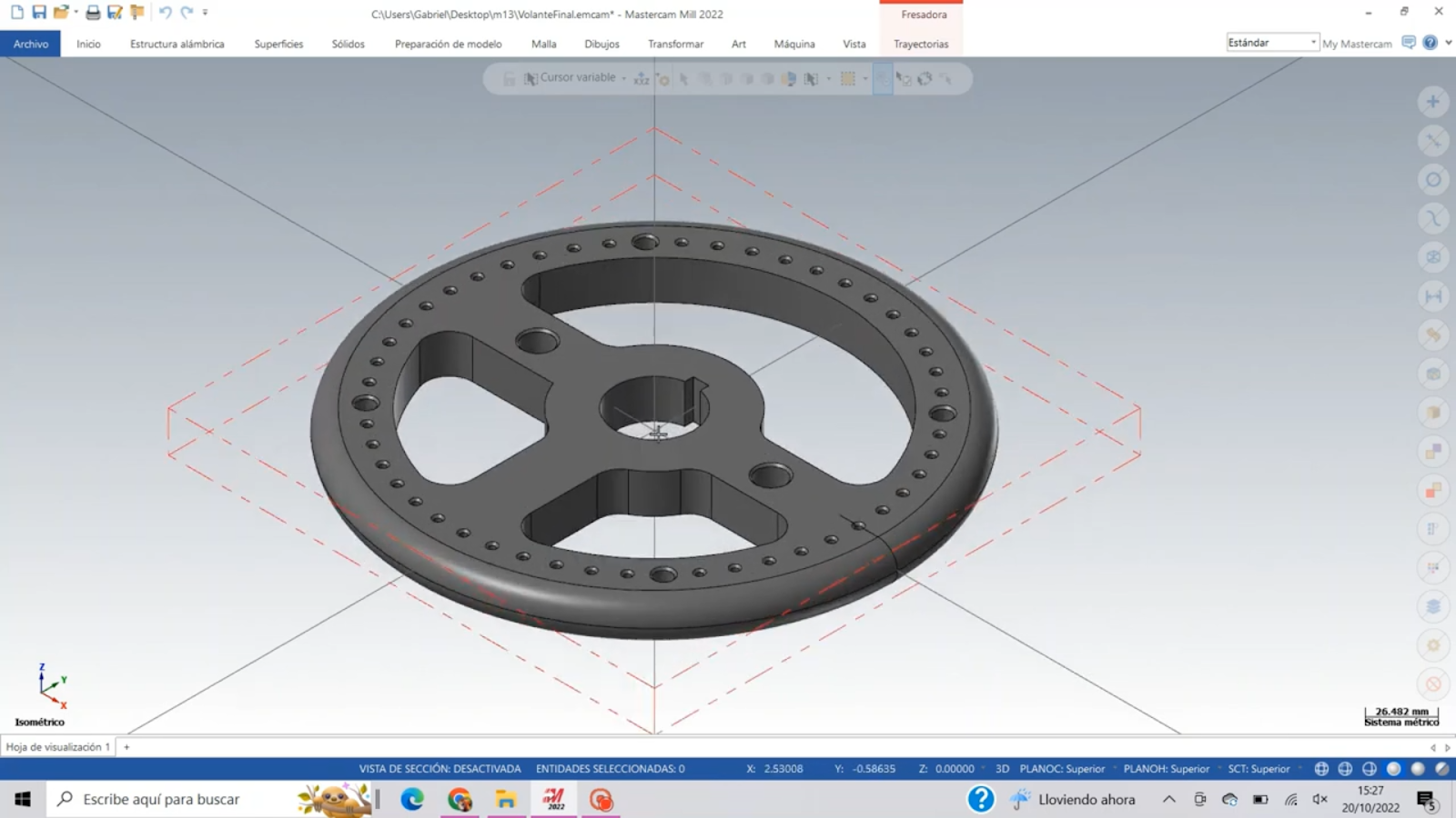 Paral·lelament, els alumnes del CFGS de Programació de la Producció en Fabricació Mecànica han començat el procés de fabricació del volant del kart, mitjançant la fabricació per CNC; ho estan desenvolupant amb el software especialitzat de CAD/CAM MasterCAM.