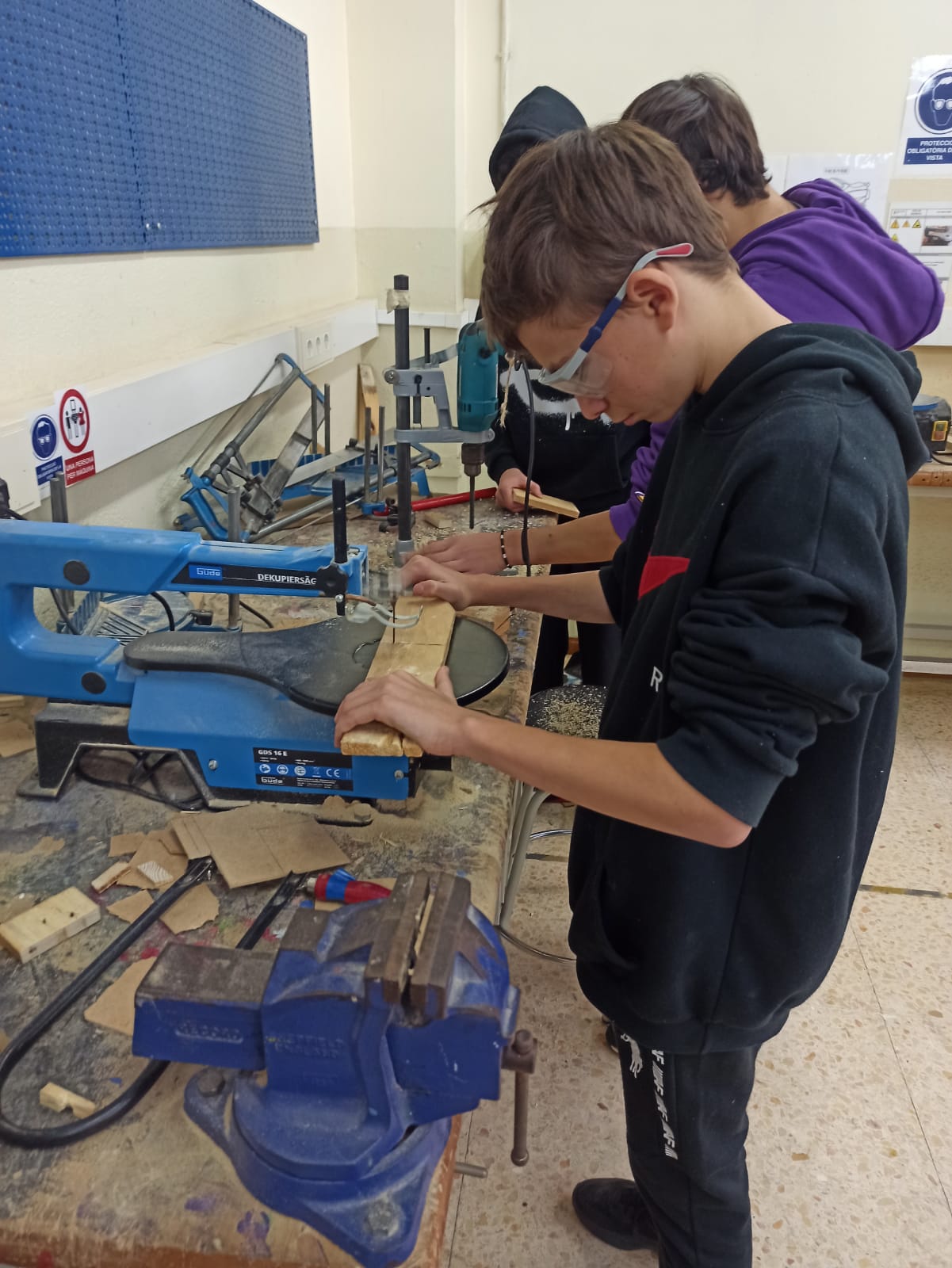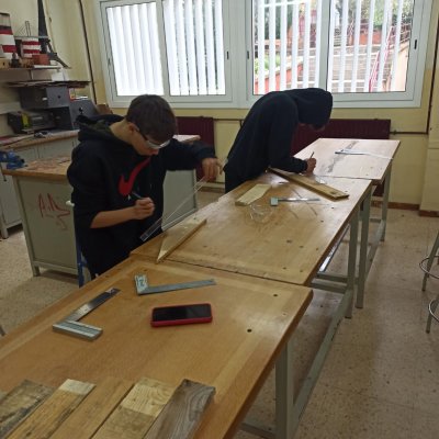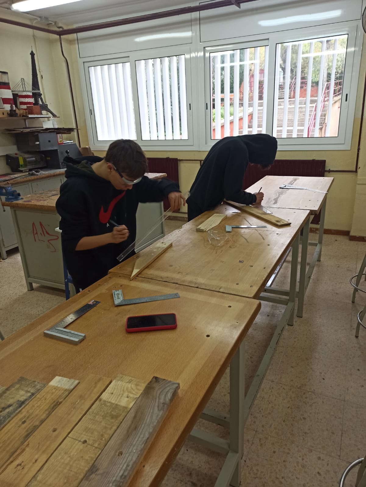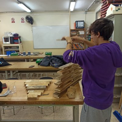 Els alumnes de 1r d’FP Bàsica han transformat un palet de fusta que tenia com a destí la deixalleria en un preciós arbre de Nadal que servirà d'expositor per la paradeta de decoracions nadalenques que muntaran properament.