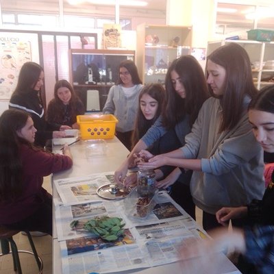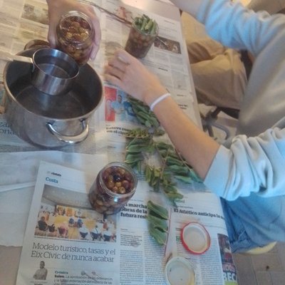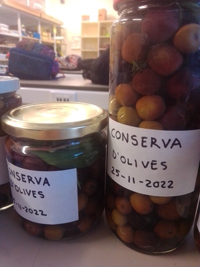 L'alumnat de l'optativa de 3r Descoberta de l'entorn, fa unes setmanes va fer conserva amb les olives de l'olivera del jardí de l'Institut.