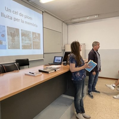 El 30 de maig l’escriptora i professora Carme Martí va tornar a l’Institut per fer una xerrada als alumnes de 4t d’ESO i parlar-los sobre la seva obra Un cel de plom, una de les que els alumnes ja fa uns quants anys que llegeixen dins la matèria de Llengua catalana i literatura a 4t.