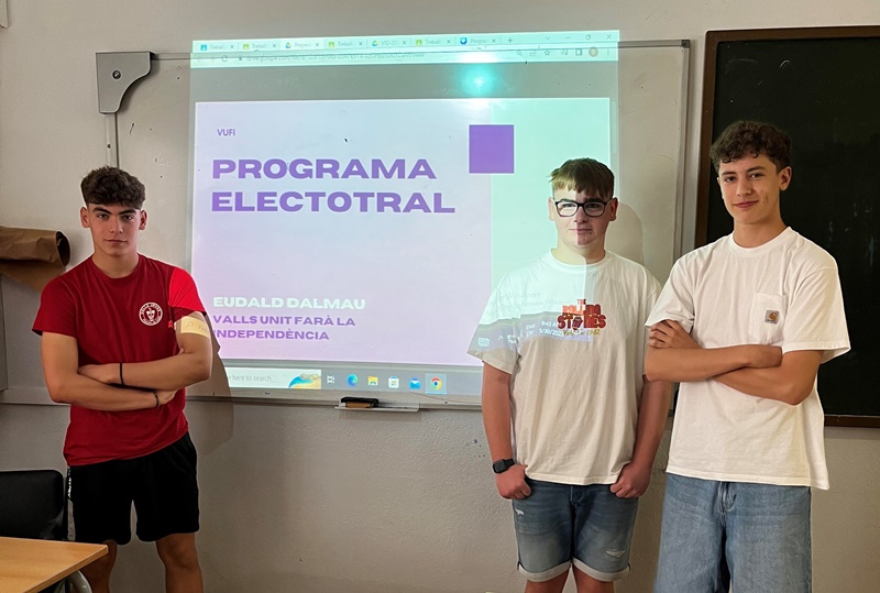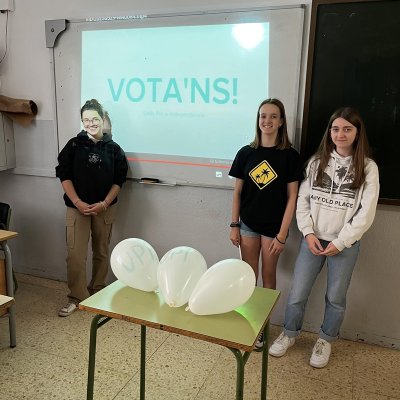 A la matèria de Socials de 3r ESO s’ha fet un projecte sobre els partits polítics i les eleccions coincidint amb la campanya electoral de les municipals. En grups han creat partits polítics, i després de dissenyar la imatge del partit, fer-ne el programa electoral, un cartell i la papereta per votar, s’ha fet un simulacre d’eleccions a cada classe que ha servit per triar l’Ajuntament que ha de governar cada grup-classe.