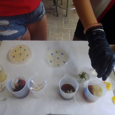 A partir de la sembra de 3 bacteris en diferents plaques han comprovat si els diferents remeis escollits per a cada grup tenen efecte antibiòtic. Han provat remeis com l'all, el gingebre, la llimona amb mel, els olis essencials o les infusions de plantes aromàtiques com el romaní.