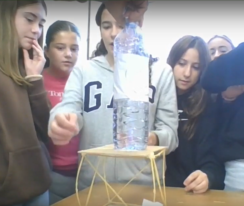 Dins la situació d’aprenentatge de Tecnologia "Disseny amb triangles," l’alumnat de 3r d’ESO ha comprovat al taller com una estructura realitzada amb material molt lleuger i trencadís (espaguetis) pot suportar una important càrrega si es fa de manera adequada. El triangle és la forma geomètrica més senzilla que no es deforma quan pateix un esforç i manté la seva estabilitat. L’alumnat ha descobert el poder del triangle, que permet estructures lleugeres que poden suportar 40 vegades el seu propi pes, i la importància de saber matemàtiques en el disseny d’estructures.
