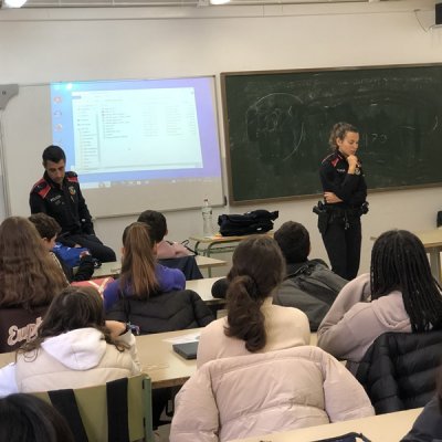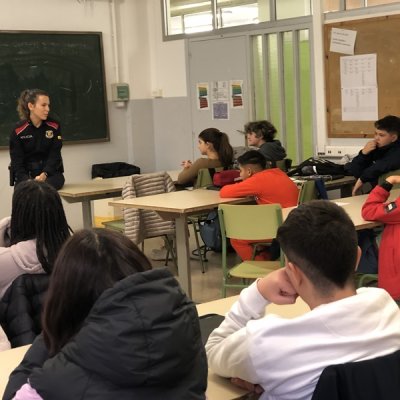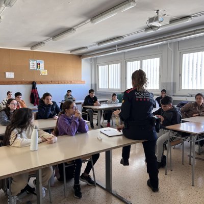Durant el primer trimestre, dos agents dels Mossos d’esquadra van venir al nostre centre per fer xerrades de conscienciació als alumnes de 1r i 2n d’ESO.