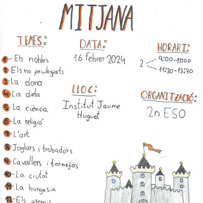 Divendres vinent farem un simposi sobre l’edat mitjana al pati de les moreres, com a cloenda del projecte de l’edat mitjana amb 2n d’ESO. Els alumnes han fet cartells per convidar-vos-hi. No hi falteu!