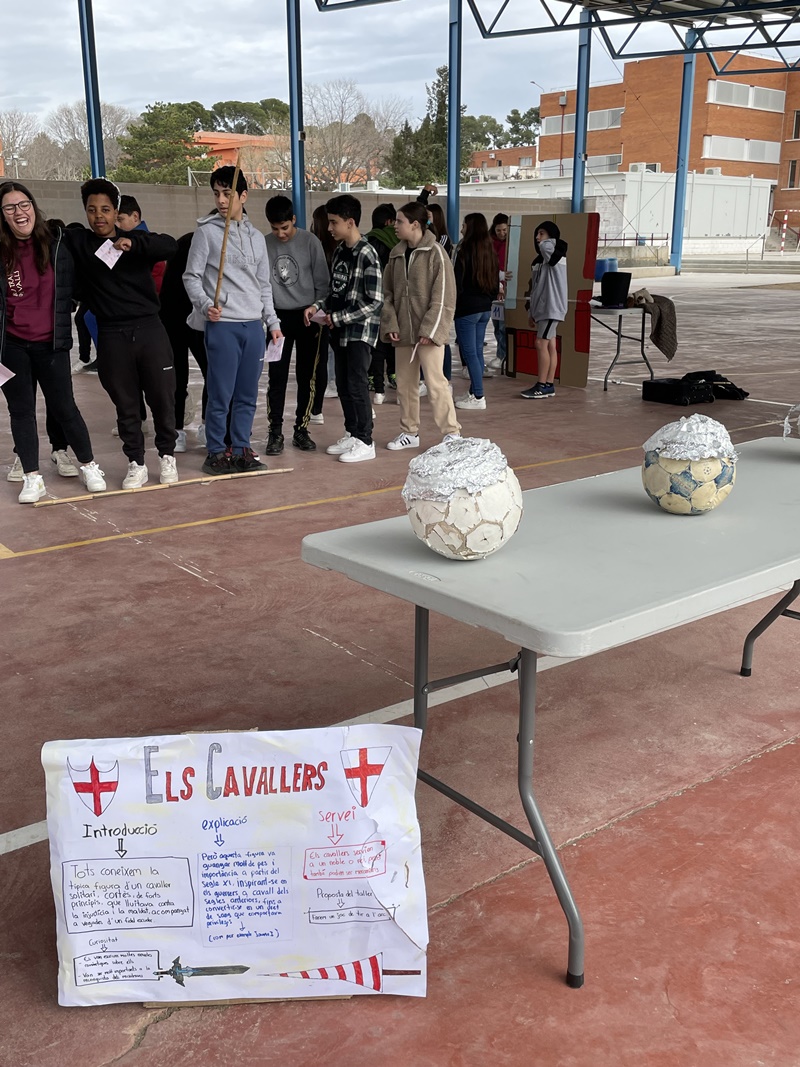 El divendres 16 de febrer l'alumnat de 2n d'ESO va fer l'activitat de cloenda del projecte de l'edat mitjana, un simposi sobre l'edat mitjana. Dividits en 12 grups diferents que corresponien a 12 temes, cada un va exposar als visitants el material que havien elaborat i estudiat. Després d'explicar la teoria del tema, feien un taller lúdic per introduir els visitants en el món medieval.