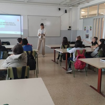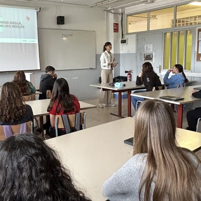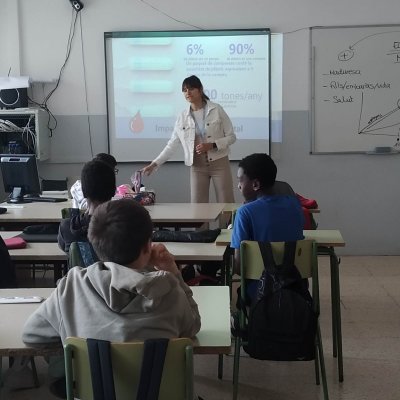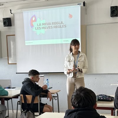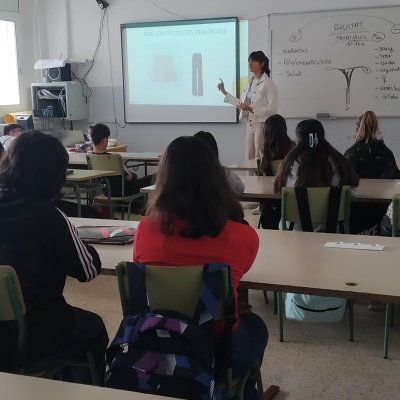 Ahir i avui, els diversos grups 1r ESO han rebut la xerrada sobre equitat menstrual que els ha fet l'Anna, una infermera del departament de Salut, amb l'objectiu d'informar-los sobre la menstruació, trencar tabús sobre la regla i, sobretot, parlar-los sobre higiene menstrual reutilitzable.