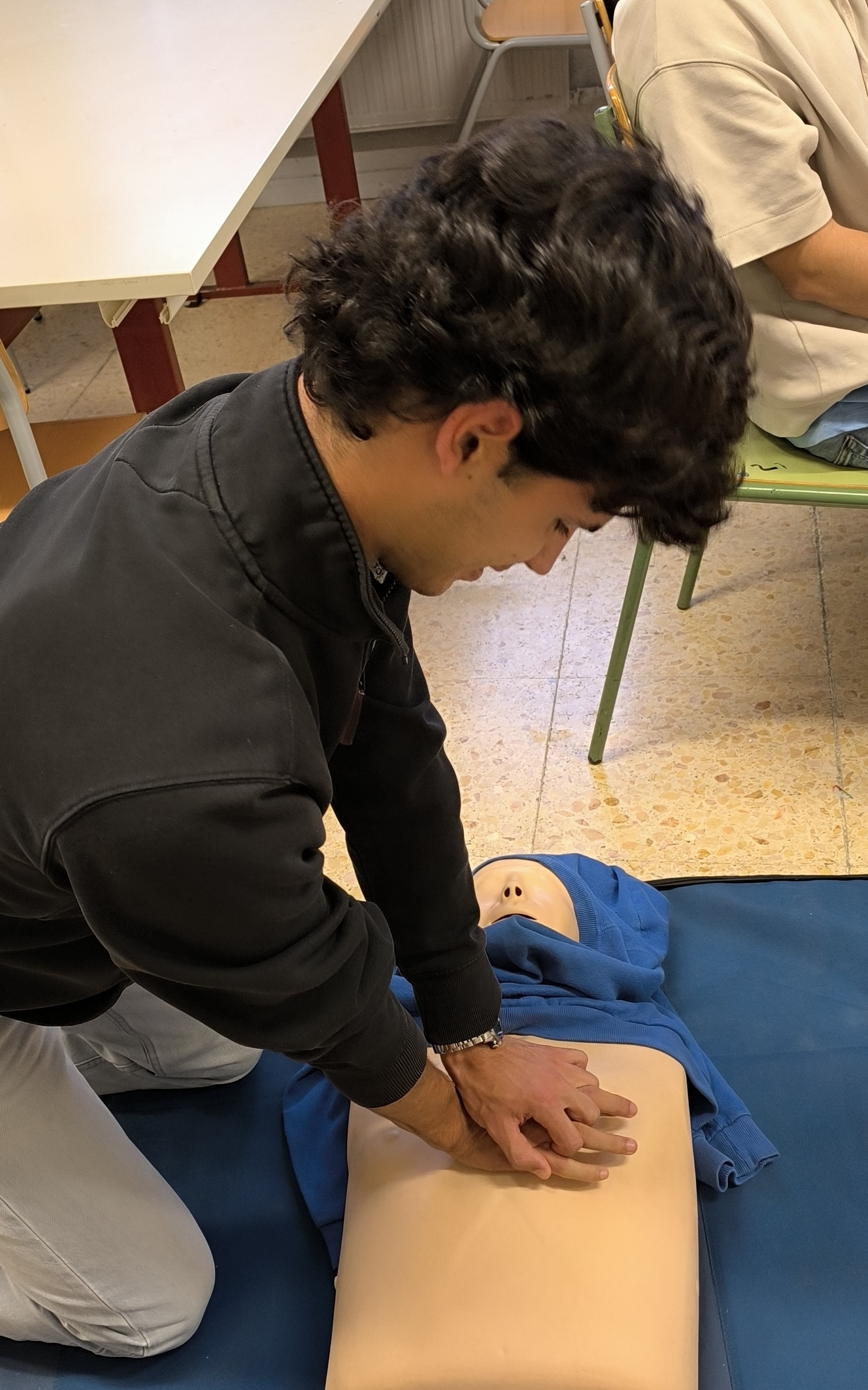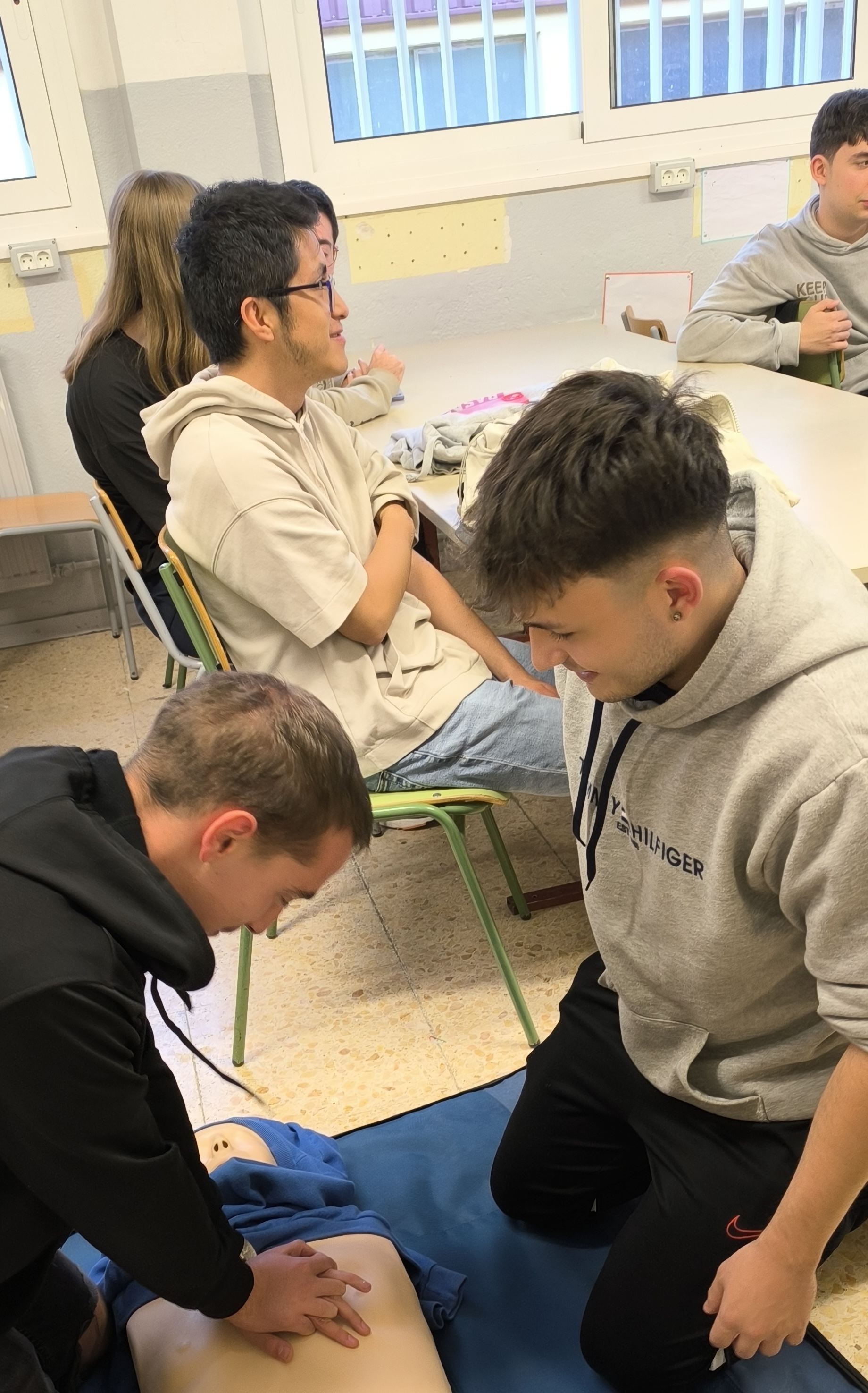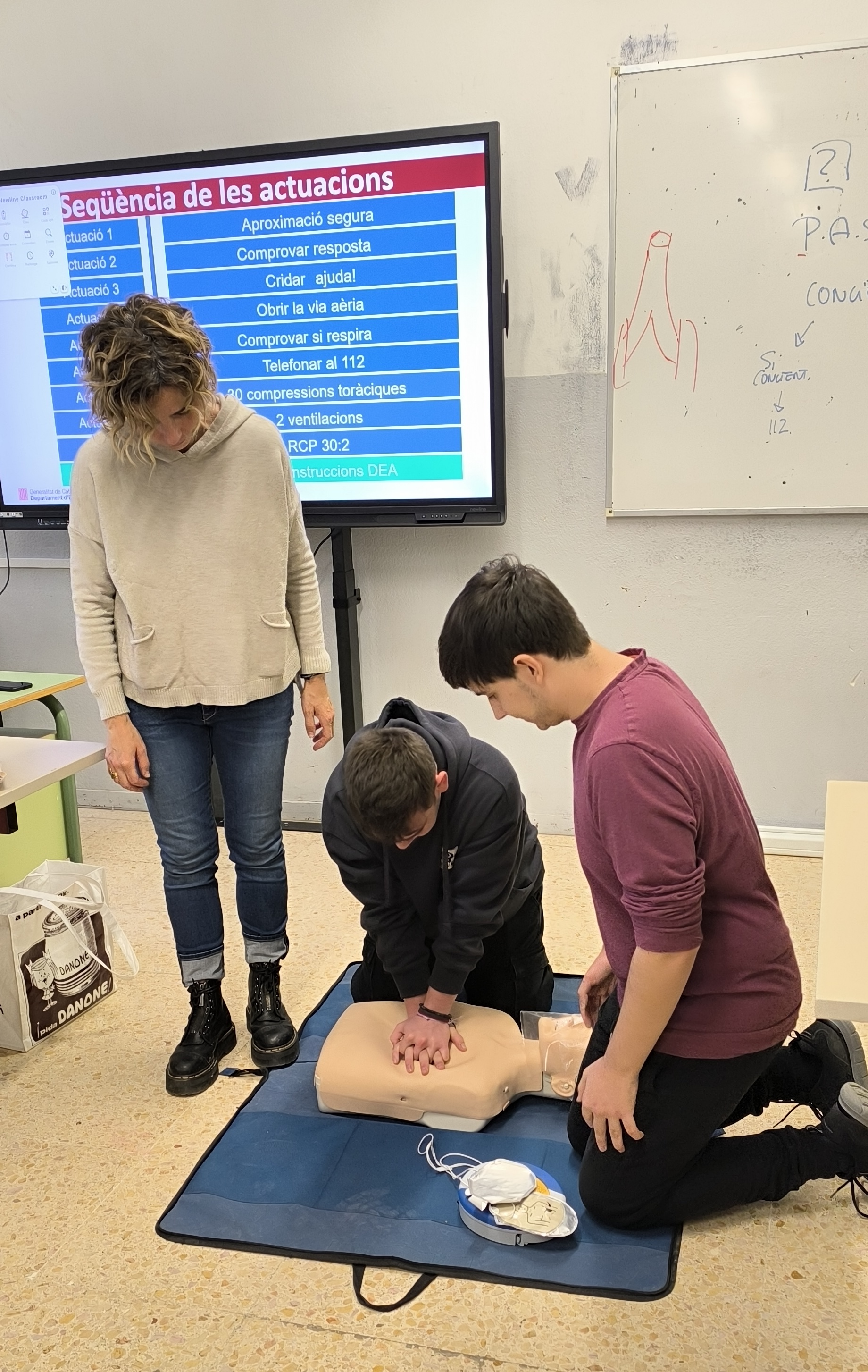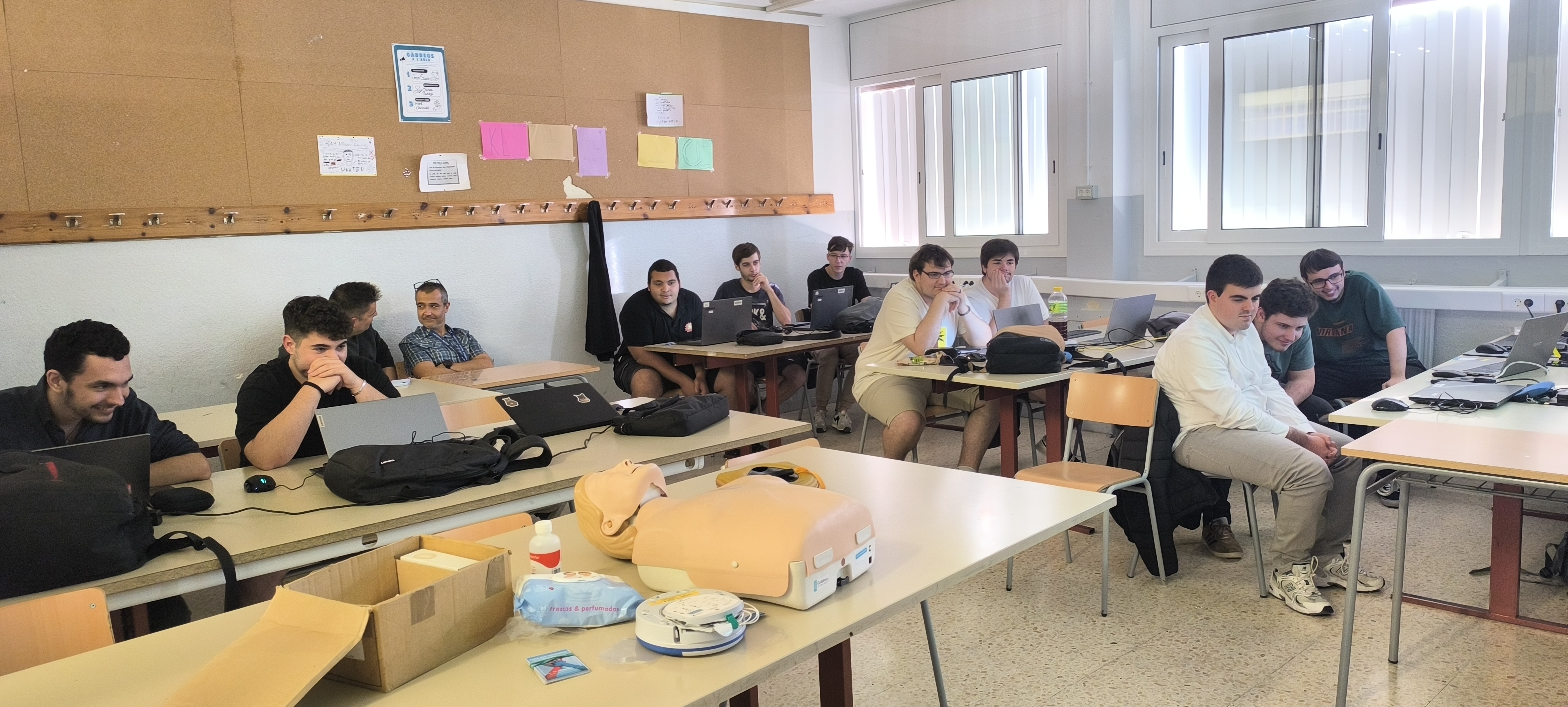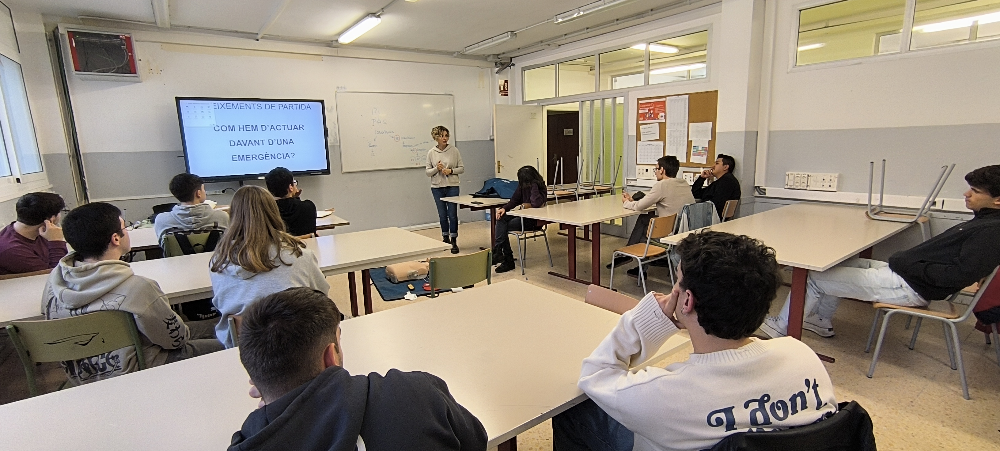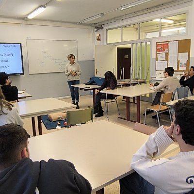 A finals d’octubre els alumnes de 2n del CFGS de Desenvolupament d’Aplicacions Multiplataforma (DAM) van participar en un taller d’iniciació a la reanimació cardiopulmonar bàsica i utilització del DEA. Aquest taller va servir per transmetre la pauta general d’actuació davant una situació d’emergència. Els alumnes van treballar les diferents baules de la cadena de supervivència, la importància de la posició lateral de seguretat i també la reanimació cardiopulmonar bàsica. El curs va ser impartit per la professora Teresa Albaigés de la Família professional de Sanitat del nostre institut.