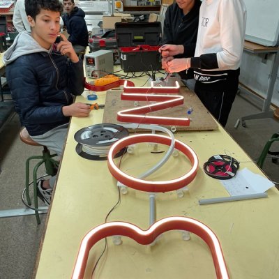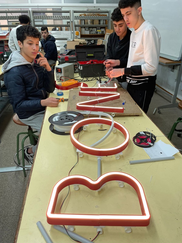 L'alumnat del PFI d'Auxiliar de Muntatges d'Instal·lacions Electrotècniques i del PFI de Fabricació Mecànica ha participat activament en la màgia del Nadal! Han dissenyat i muntat els suports del cartell, instal·lat les tires LED de neó i col·locat les llums que il·luminen aquestes festes.