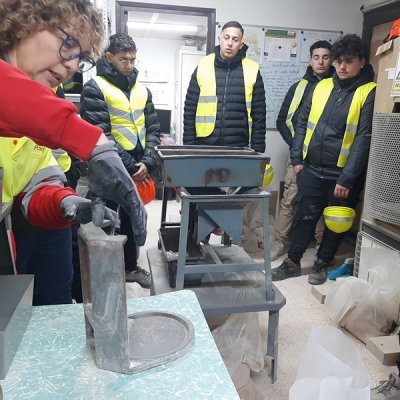 Els alumnes de 1r del CFGM d'Excavacions i Sondatges a finals de desembre van fer assajos de formigó acompanyats per la Remei, tècnica de laboratori de Canteras La Ponderosa. També van fer el con d'Abrams per aprendre a mesurar la consistència del formigó i provetes, que desemmotllaren la setmana següent, per a mesurar-ne la resistència a compressió.