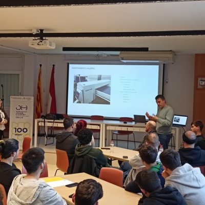 Mireia Alcobé, de recursos humans, i Jordi Cacho, cap de manteniment i exalumne del cicle de robòtica del centre, van presentar l'empresa i les pràctiques que podran fer-hi els nostres alumnes. Finalment, van portar berenar per a tots els assistents.
