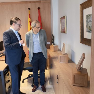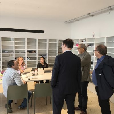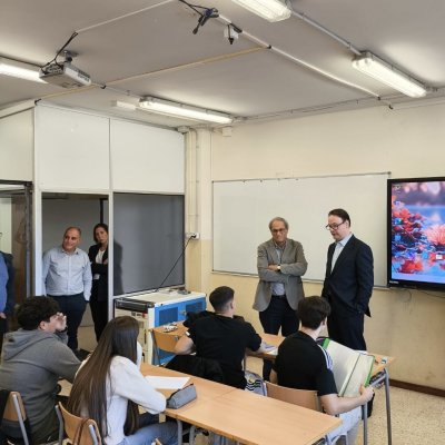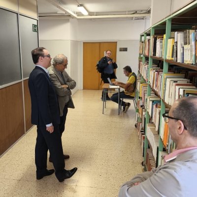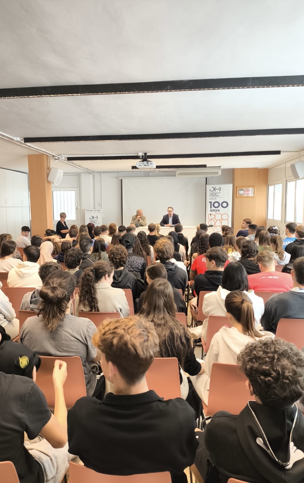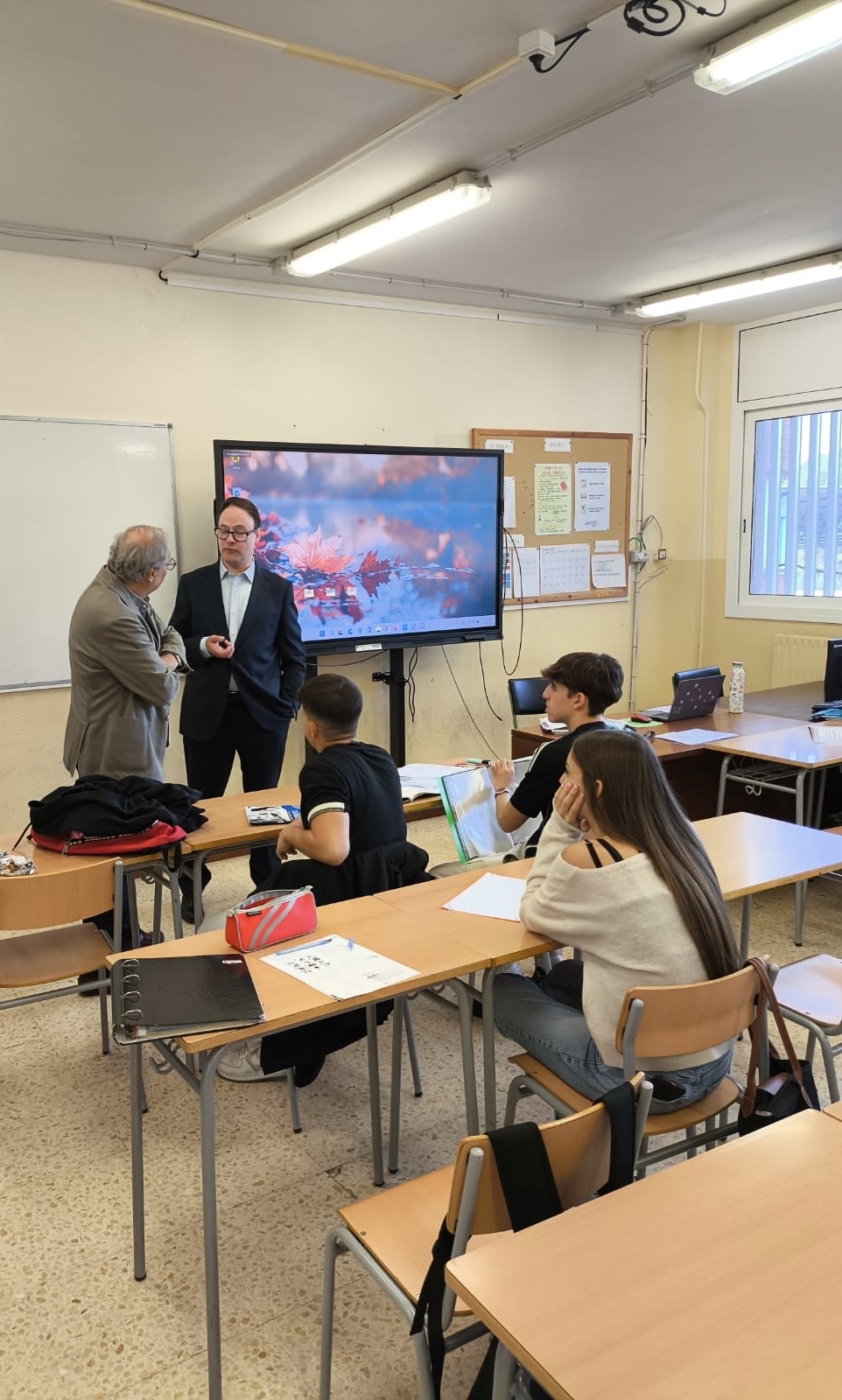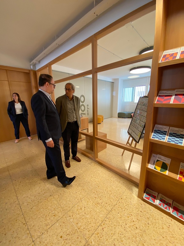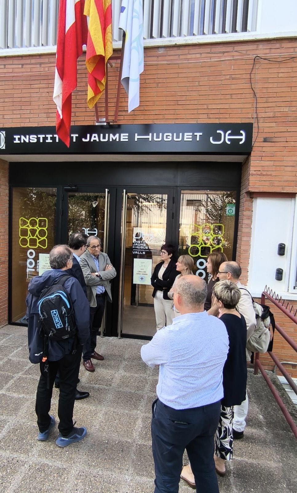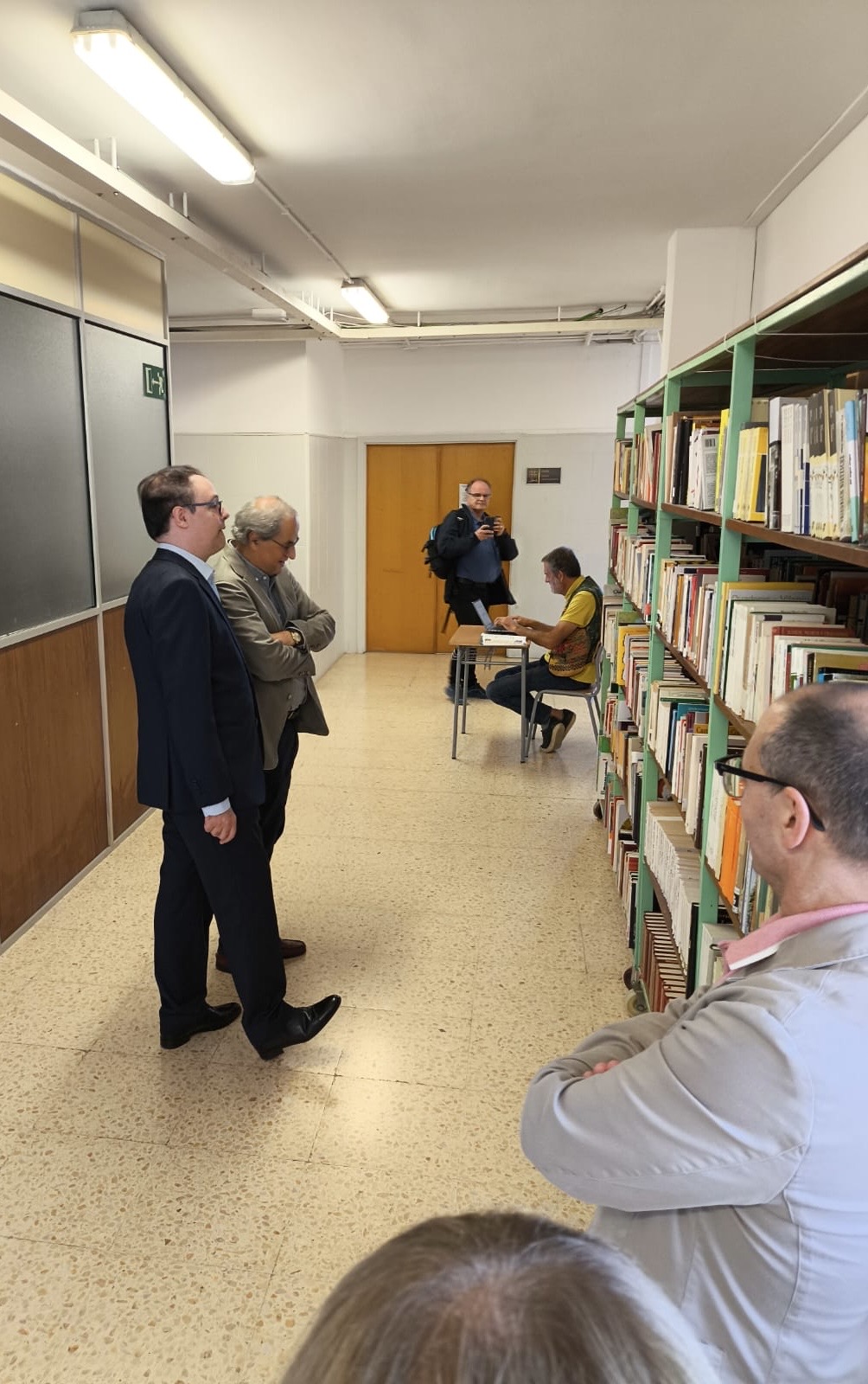 A la seva arribada va ser rebut per l’equip directiu i membres de la comissió del Centenari, els quals el van acompanyar durant la visita dels espais remodelats del centre i algunes aules de cicles formatius.