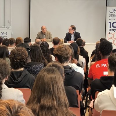 Amb el títol “Llengua i Escola”, el president Torra es va adreçar a l’alumnat de primer de batxillerat i a una representació dels alumnes de la formació professional de l’Institut.