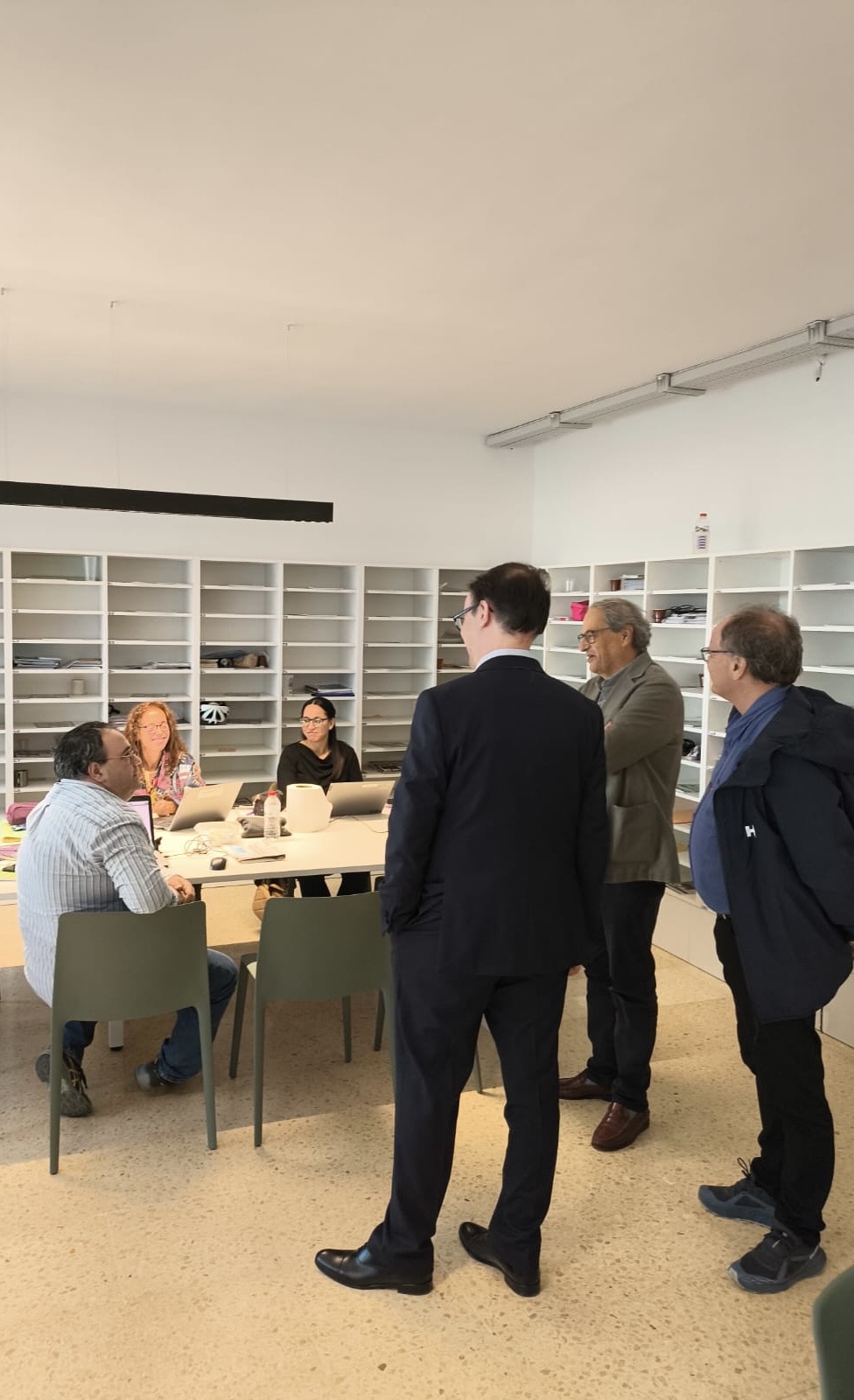 Tot seguit, al despatx del director, signà en el llibre d’honor i va fer un esmorzar de treball amb professors del departament de Llengua catalana per conèixer quina és la seva visió sobre la situació actual de la llengua, tant al centre com en l’entorn dels joves.