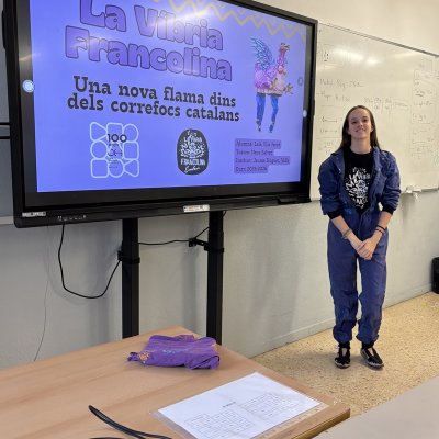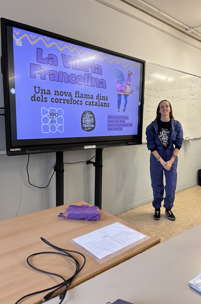 L’altre treball va ser “La Víbria Francolina, una nova flama dins dels correfocs catalans”, de la Laia Vila Ferré, que va venir acompanyada del grup de grallers i portadors de l’entitat Embruix del Morell, que van fer ballar a la pista coberta del centre la Víbria Francolina. (vídeo)