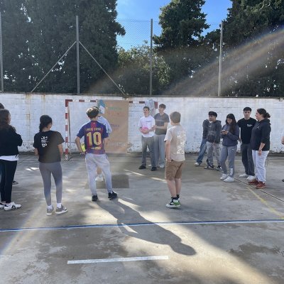 L'alumnat de 1r d'EAS va dur a terme una actuació / "role playing" on dramatitzaren un cas de mort sobtada i el protocol que s'ha de seguir davant d'aquesta situació. Es va fer a la zona del pati propera a les escales dels vestidors d'educació física i s’hi dedicaren els primers 15 minuts del pati.