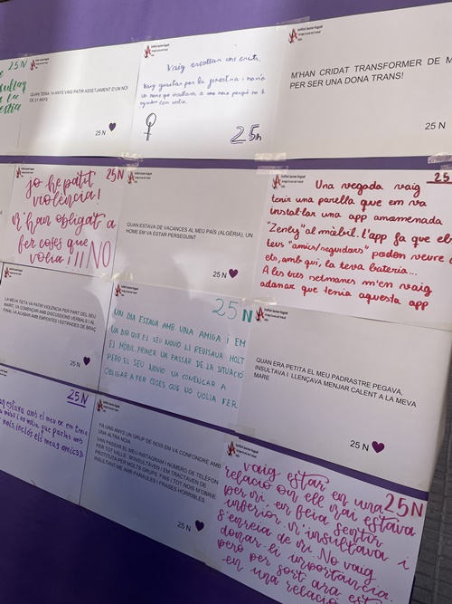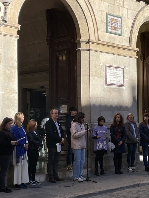 D’altra banda, les alumnes que formen part de la comissió Espai Lila JH van assistir a l’acte que es va fer amb motiu del Dia Internacional per a l’Eliminació de la Violència vers les Dones, que fou organitzat per la Regidoria d'Acció Comunitària, Participació i Igualtat de l’Ajuntament de Valls. Isona Ferré Cebrian, Carla Soler Domingo, Xènia Massip Ciurana, Txell March Domingo, Leire González Pérez, Coia Morera Galofré, Zebura Ferrer Marcos, Isona Morató Nogués, Alma de Arriba Manzano, Ona Llorach Llagostera, Naroa López Cuenca, Sara Taider Boumaza, Anna Boades Segú, Iris Sans Borràs, Claudia Escoda Domínguez i Dúnia Iglesias Rodríguez, acompanyades per la professora Sara Álvarez, van anar a la plaça del Blat, on van penjar cartells reivindicatius del 25N i van participar en la lectura del manifest juntament amb altres centres de secundària de la ciutat.