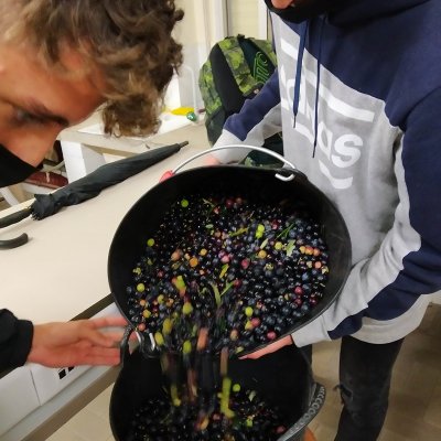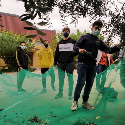 L'alumnat de l'optativa d'Escoles verdes de 3r d’ESO ha collit les olives de l'olivera que tenim al jardí de l'Institut.