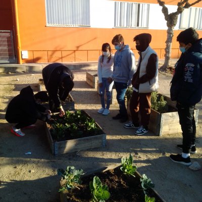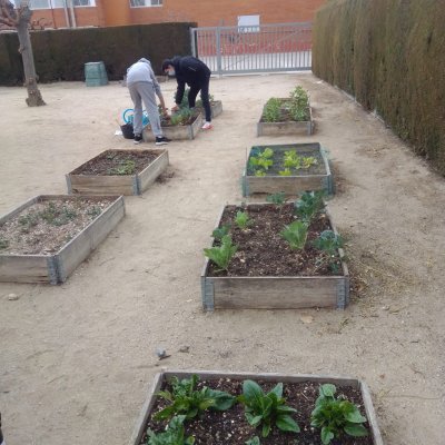 Els alumnes de l'assignatura Descoberta de l'entorn aquests dies ja comencen a collir els primers fruits de l'hort: espinacs, enciams i bròcoli. A més, també han plantat varietats autòctones en el marc del projecte Eixarcolant llavors: calèndula i flor de Sant Joan, per atraure insectes a l'hort i augmentar la biodiversitat del nostre pati.