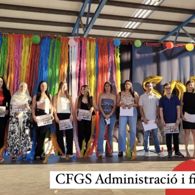 -Família d’Administració i Gestió: del CFGM de Gestió Administrativa la Eva Solanes Queralt de 2n i el Xavier Àvila Alcaina de 1r. Del CFGS d’Administració i Finances, Laia Gatell Guillemat de 2n i Eudald Forès Civit de 1r.