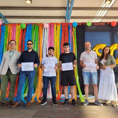 -Família d’Electricitat i Electrònica: CFGM d’Instal·lacions elèctriques i automàtiques, de 2n Alejandro Leiva Bueno i de 1r Samuel Ruiz Ballesteros. Del CFGS d’Automatització i Robòtica Industrial, Ali Dahraoui de 2n i de 1r Rubén Morejón Pulido. Del PFI d’Auxiliar de Muntatges d’Instal·lacions Elèctriques d’Aigua i Gas, Gabriel Álvarez Fernández.