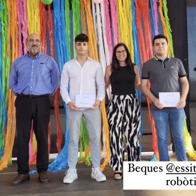 Després es van lliurar les beques ANESPRO, patrocinades per dues empreses col·laboradores amb la fundació, Essity i Infordisa. La representant d’Essity, Alda Ollé, directora de recursos humans, lliurà les beques econòmiques per als millors expedients que inicien un CFGS industrial i que provenen d’un CFGM. Aquest any corresponen a: per al CFGS d’Automatització i robòtica per al Pol Avellà Vivancos i a Quim Prats Cases per al CFGS en Mecatrònica Industrial. Tot seguit, el representant d’Infordisa, Jordi Ferrando, lliurà la beca per al CFGS d’Administració de Sistemes Informàtics en la Xarxa per a Gerard Anton Moreno Gràcia, que prové del CFGM en Sistemes Microinformàtics i Xarxes.